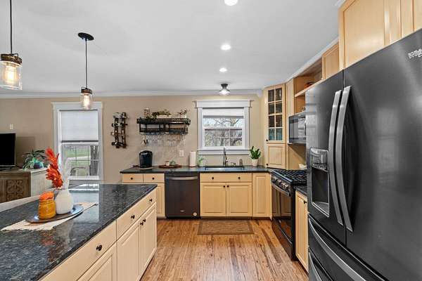 Step in and instantly feel at home. This beautifully cared for contemporary ranch sits on peaceful acreage and offers a rare layout that truly meets the needs of today's families. The moment you enter, you're greeted with warm bamboo flooring, soft crown molding in every room, and newer recessed lighting that sets the perfect tone throughout the main living areas. The kitchen features granite countertops and updated cabinetry, creating a space that feels both welcoming and refined. The main level includes 3 comfortable bedrooms and 2 updated bathrooms, with the primary suite offering a walk-in tile shower and a sense of calm and privacy. But what truly sets this home apart is the full walkout lower level, a hard-to-find feature that opens the door to endless possibilities. This spacious lower level includes its own full kitchen with granite countertops and stainless-steel appliances, a large living area, full bath, and additional rooms perfect for extended family, loved ones who need their own space, long-term guests, or a private retreat for hobbies and gathering. Homes with this kind of comfort, flexibility, and thoughtful updating are rare. Don't miss the opportunity to make it yours, schedule your private showing today!