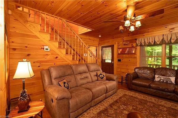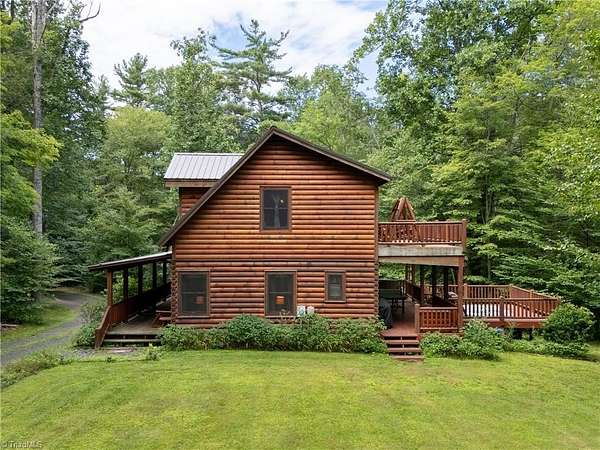 TURNKEY mountain getaway on 3+ acres w/CREEK! NO HOA. CABIN w/MAIN LEVEL LIVING, featuring 3 bedrooms, each w/ensuite bathroom. Open living & dining area feature a wood burning fireplace w/stone surround. Multiple outdoor gathering spaces including level yard w/fire pit & creek, 2 covered porches & upper-level open deck to bask in the sunshine. Conveniently located between Boone & West Jefferson. Take advantage of popular Downtown West Jefferson w/dining, winery, shopping, breweries, parks, farmer's market & art galleries. Less than 25 min to Boone. Outdoor enthusiasts will love Ashe County! Enjoy multiple local & state parks: Paddy Mtn Park, West Jefferson Park, Ashe County Park, Blue Ridge Pkwy, Elk Knob State Park & Mt. Jefferson State Natural Area. Access the New River at multiple entry points, all within 15-20 min from the cabin. Make this your weekend getaway. Arrive from Winston in 1 hr, 30 min & from Charlotte in 2 hrs. Short and long-term rentals allowed.