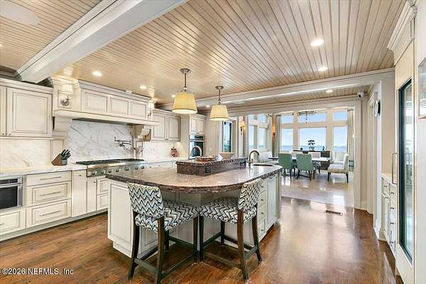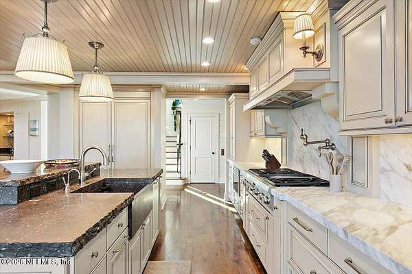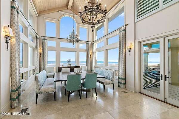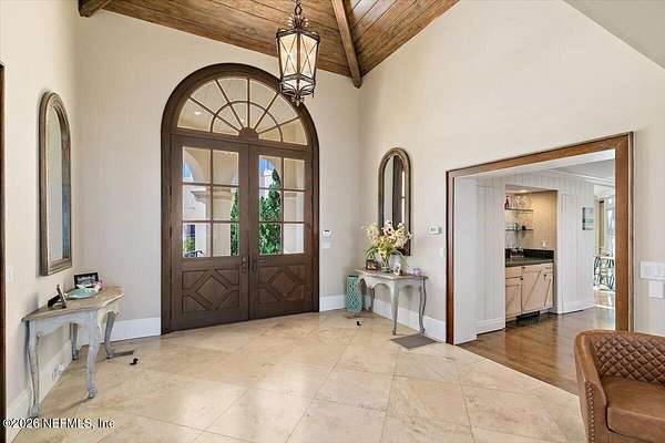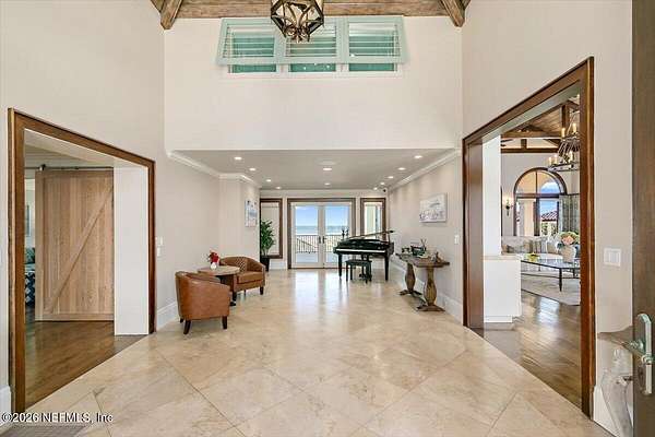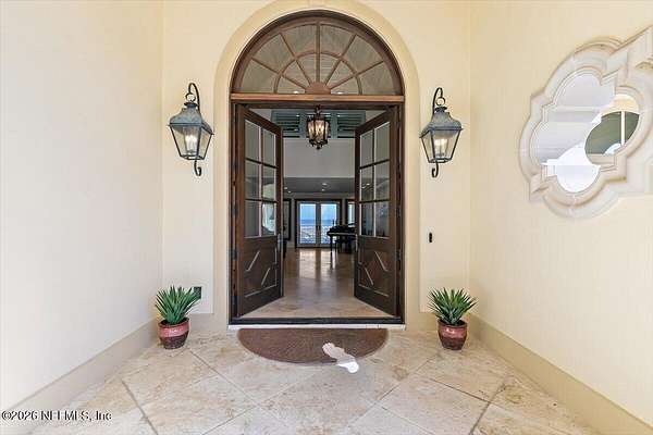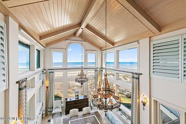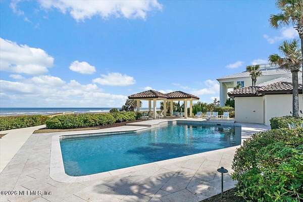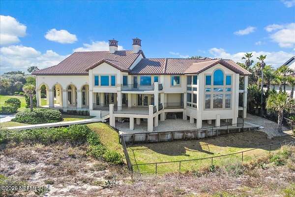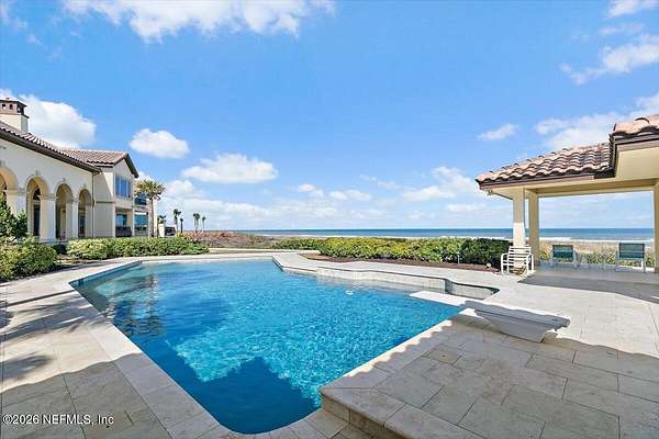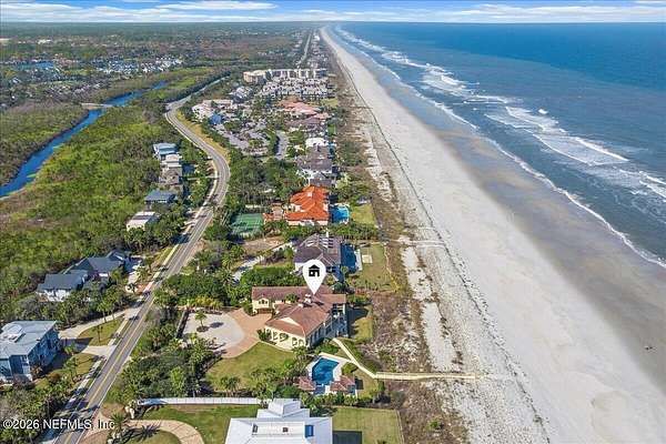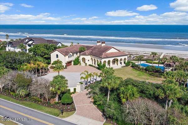 Set along one of the most coveted stretches of Ponte Vedra Boulevard, this gated oceanfront estate represents a rare offering of scale, privacy, & commanding Atlantic views. Spanning 1.62 acres w/ an extraordinary 200 feet of direct ocean frontage, the property embodies refined coastal living on the prestigious 900 block of PV Boulevard. Originally transformed through an extensive reconstruction in 2014--and enhanced by more than $1.5 million in recent updates--the residence was thoughtfully designed to maximize panoramic ocean views while delivering modern comfort & timeless craftsmanship. The estate features six bedrooms, including three oceanfront suites, & seven baths, w/ elegant living spaces that flow effortlessly toward the Atlantic. Sophisticated finishes define the interiors, including soaring wood-beam ceilings, travertine & hardwood flooring, custom millwork, solid wood doors, & two fireplaces that add warmth & architectural presence throughout. A fully appointed chef's kitchen anchors the home & opens to an extraordinary two-story dining room framed by sweeping ocean views. Equally impressive, the dramatic two-story living room creates a stunning focal point for both everyday living & entertaining. Modern convenience is seamlessly integrated w/ a private elevator, full-house generator, state-of-the-art Lutron lighting & automated shades, & a whole-home Sonos audio system. Outdoors, the estate unfolds as a private oceanfront retreat. A sparkling pool w/ cabana bath, gazebo, & entertaining bar are surrounded by lush landscaping & expansive terraces designed to capture the beauty & rhythm of the Atlantic. The property's generous grounds offer both privacy & flexibility for future enhancements. Architectural plans are included for a three-car garage w/ guest apartment & additional living spaces--presenting a rare opportunity to further expand this remarkable oceanfront compound. Plan available upon request. Ask about Preferred Membership Initiation Fee pricing for Ponte Vedra Inn & Club and The Lodge & Club, available exclusively through Ponte Vedra Club Realty. 24-hour notice to show required, and sellers require proof of cash funds or a letter of pre-qualification prior to showings. Most furnishings are negotiable via separate purchase.