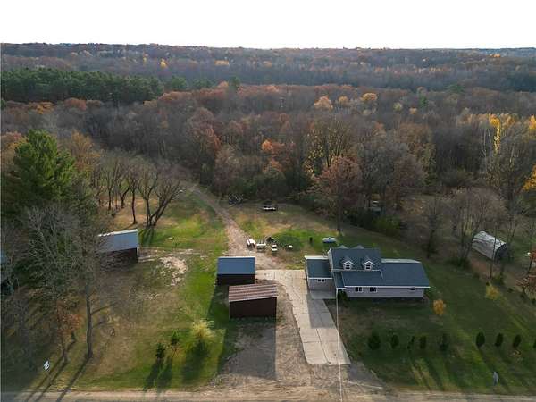 Country Living Just Minutes from Town!Discover the perfect blend of privacy and convenience with this charming 3 bedroom,2 bathroom home, set on 2.48 acres just 5 minutes from town. Nestled in a serene natural setting and neighboring Xcel river frontage land,this property offers incredible opportunities to enjoy the outdoors, watch wildlife from your porch or bow hunt right out your back door! Inside,you'll find a welcoming eat-in kitchen,spacious bedrooms,a cozy bonus room with a pellet stove,a second versatile bonus space, and convenient main-level laundry.The upper-level bedroom serves as a private master suite complete with a sitting area and full bath ideal for relaxing at the end of the day.1.5-car garage and Two pole sheds for all your storage needs. Enjoy all the outdoor recreation this area has to offer, right at your doorstep.Recent updates include: 2019, in-floor heat on 1/2 of the main level,roof 2019,new drilled well 2021,Don't miss out schedule your private showing today!