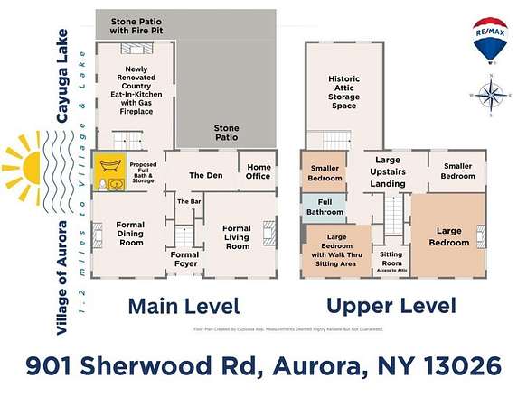 A Rare Historic Cobblestone Home, sitting on 6 acres with Newly Renovated Gourmet Kitchen, 4 Bedrooms, Formal Rooms, 4 Exquisite Outside Patios, Fenced-in Garden, Outstanding Storage Space, and Cayuga Lake Views. Meticulously maintained, thoughtfully upgraded, decorated with style. The Main Level Features the Formal Living & Dining Rooms, with Medallion Chandeliers, Show Fireplaces, Storage Closets, Original Fixtures and Great Light. The Gourmet Kitchen with well Appointed Cabinets and Counter Tops, Viking Stove, Crockery Built-ins, Window Seat (over backyard), Working Gas Fireplace (cozy Kitchen), Kitchen Island and more! The Main Level Den, just off Kitchen with access to the Bar & Home Office. Upstairs you'll find the 4 Bedrooms, with XXL Landing, A Full Bathroom with Tub/Shower, a large storage room (over Kitchen) and Walk-up access to Attic. The Cement Floor, Spacious, Cellar has access through the Home and Bilco Doors off the Main Patio. Outside on the 6 acres there are 4 Patio spaces for all your friends to gather, 2 right off the Kitchen and fenced in garden and 2 on the north side of the barn, all offer a private setting. This Cobblestone House is one of only ~1100 in the USA, the Cobblestone walls are thick and designed to provide all needed insulation. Built in 1836, (11 years after the Erie Canal) history is deep in this home. The Eastern Property line is Dean Creek, a tributary to Cayuga Lake. You need to experience this house, to truly understand its value. Lucky you a previous deal fell apart due to buyers financing that must mean this home was meant for you instead! Must see to believe!