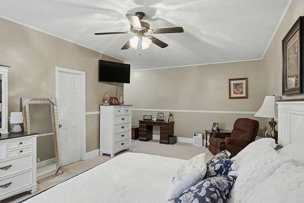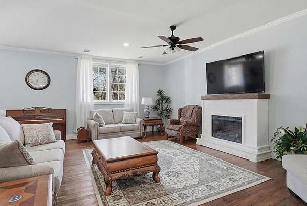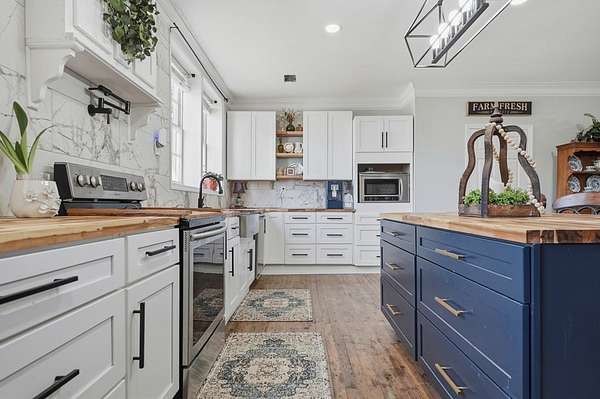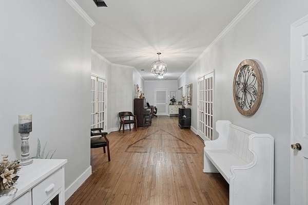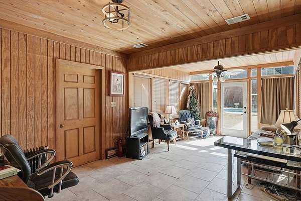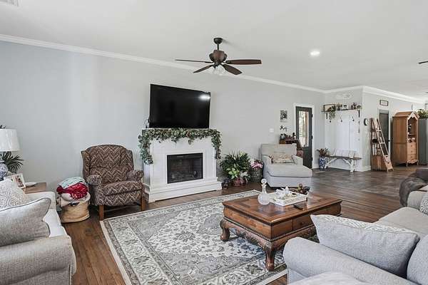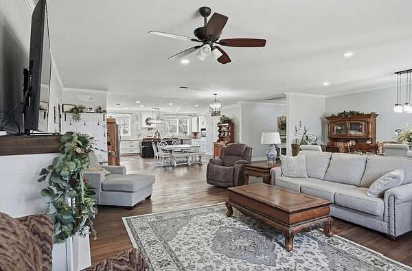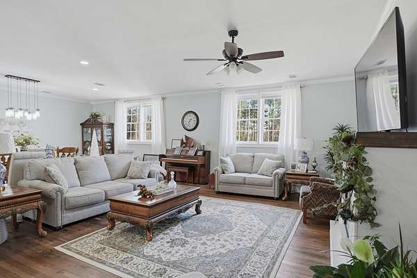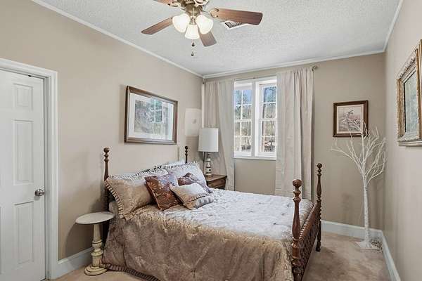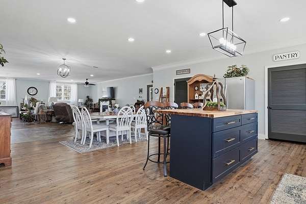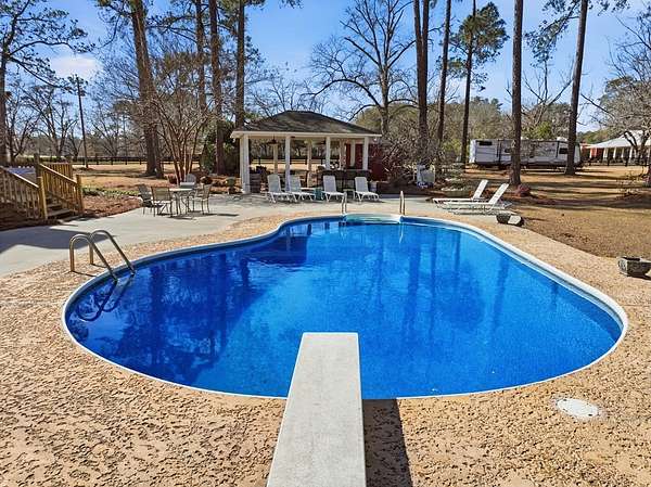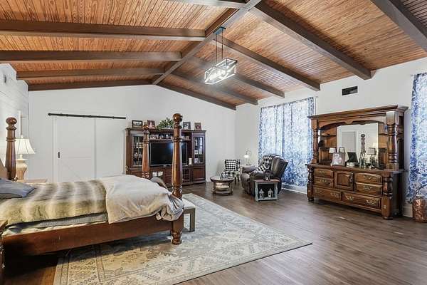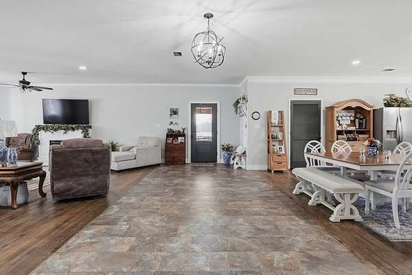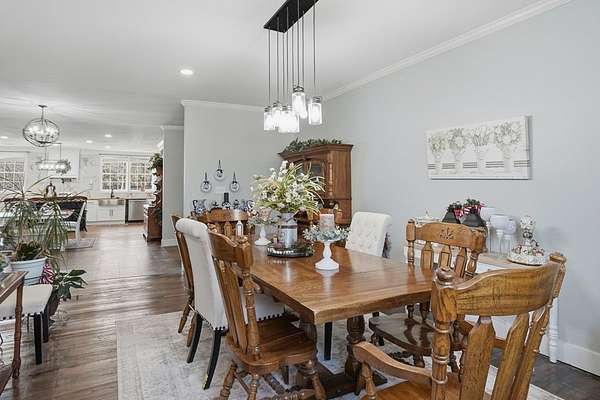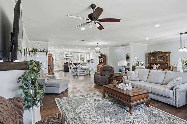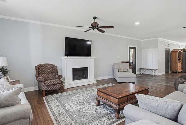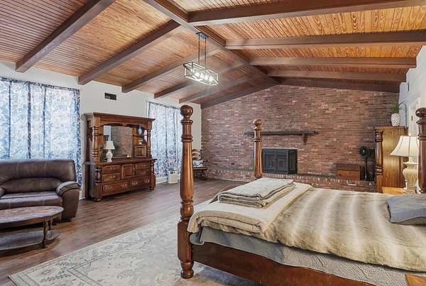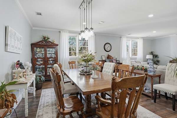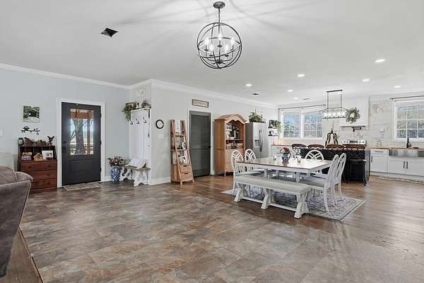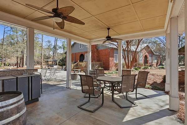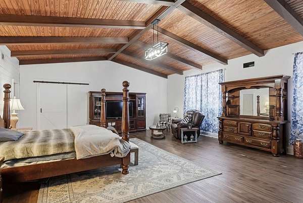 Situated on 3 beautiful acres, this 4 bedroom, 3 bath brick estate delivers space, charm, and unforgettable outdoor living. Inside, you'll find warm wood beams, a statement brick fireplace, and spacious living areas designed for both comfort and entertaining. The beautifully updated kitchen features quartz countertops, custom cabinetry, a large island with seating, and abundant natural light. The primary suite offers a relaxing retreat, while the additional bedrooms provide flexibility for family, guests, or office space. Step outside and experience true Southern living. The covered patio overlooks a sparkling in-ground pool, expansive yard, and a charming guest house perfect for visitors, or a private workspace. The detached 1 bed/1 bath guest cottage adds incredible versatility and value. With timeless brick construction, inviting curb appeal, and room to spread out inside and out, this property delivers the lifestyle you are looking for.