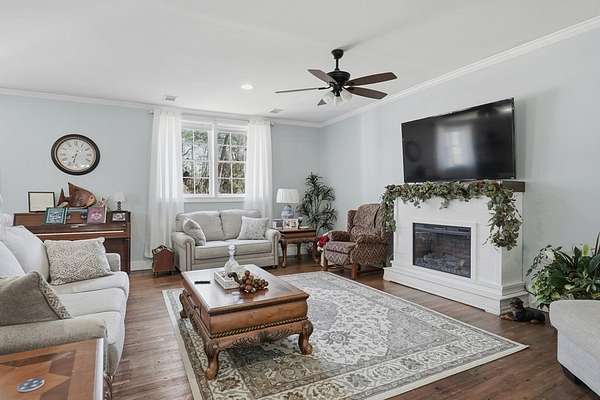 - Ceiling Fan(s), Fireplace-Wood, French Door, Wood Floors
