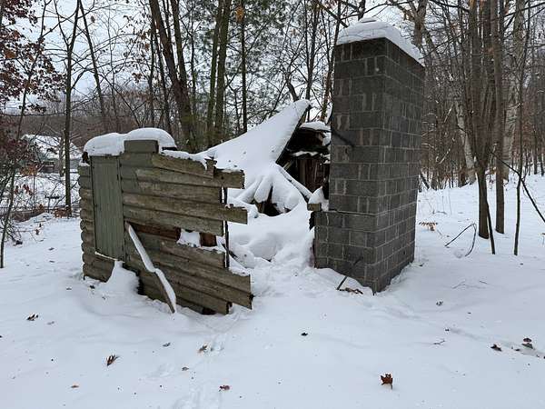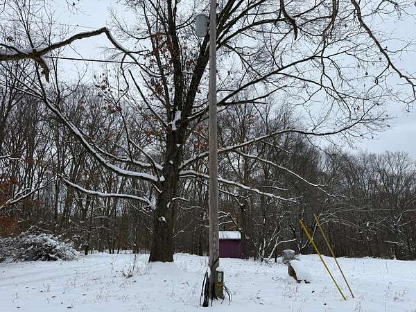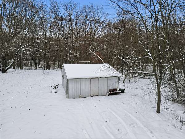 The 1 acre parcel in the SW corner has a storage building, electricity power pole, well and septic. This is the 9010 Lake Dr., Mecosta address. The gate is located to the East of this parcel.