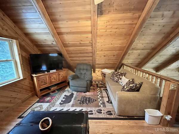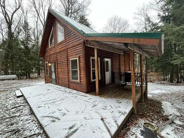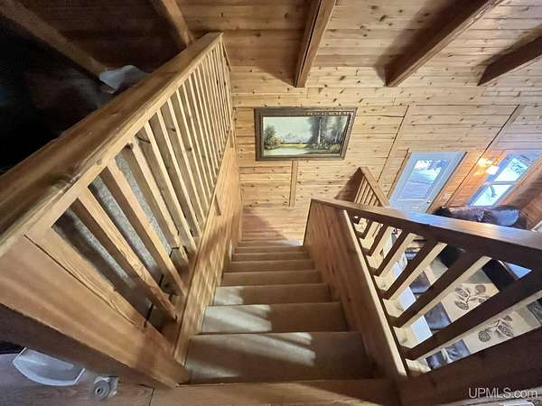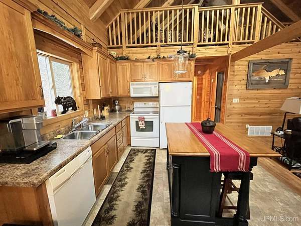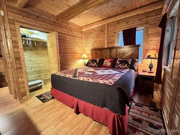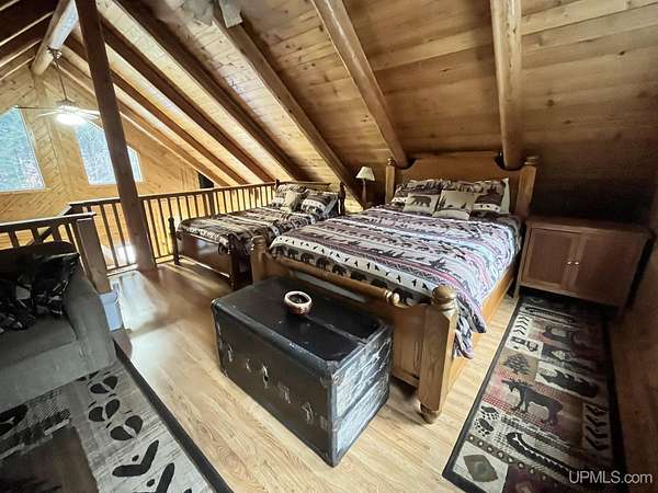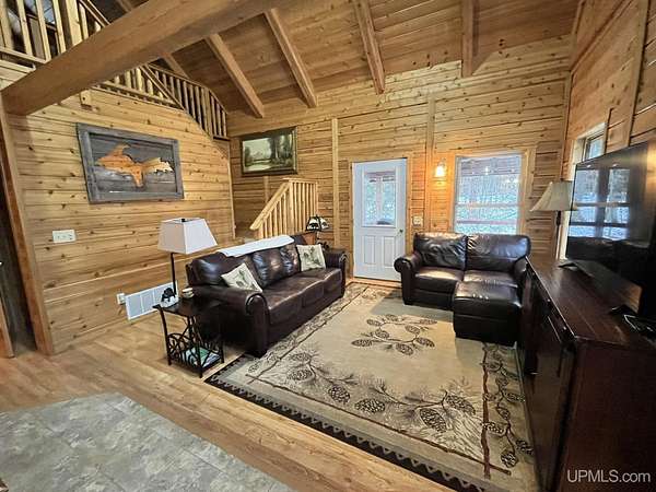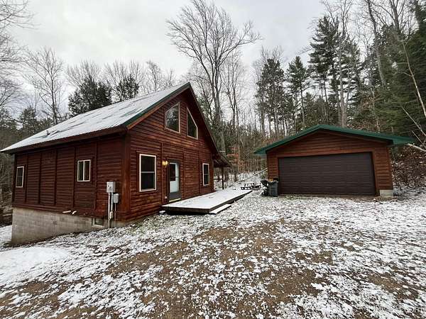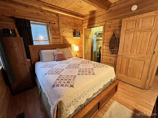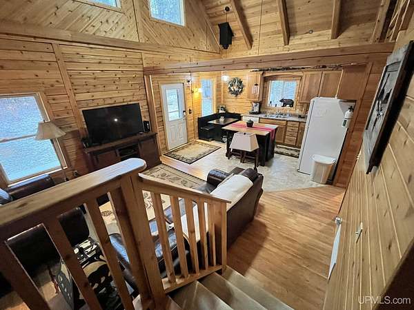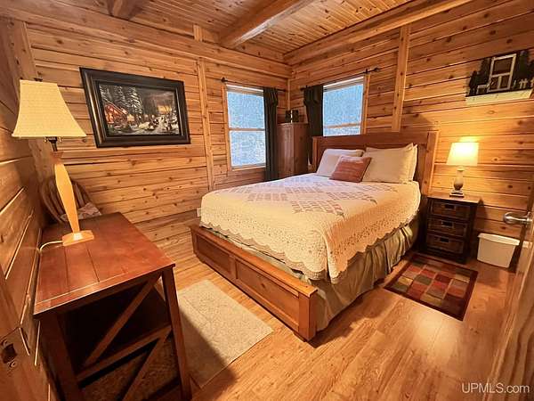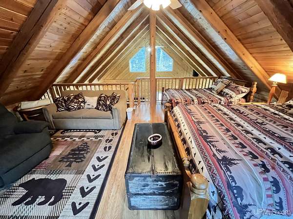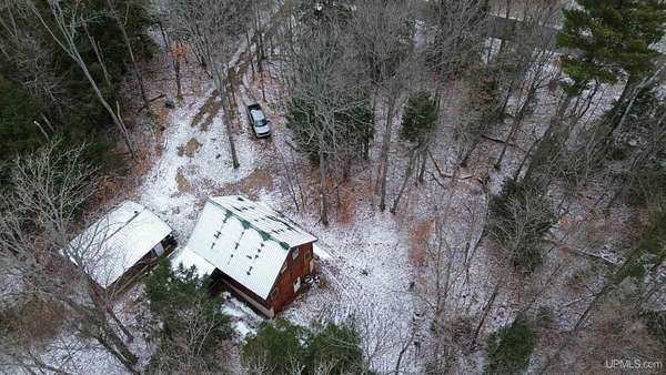 Experience true Upper Michigan living in this Western Red Cedar log home, set on 2 acres that border U.S. Forest Service land. Located in the heart of the Hiawatha National Forest, this property offers direct access to endless outdoor recreation. The home features two main-level bedrooms plus a loft that works perfectly as a third bedroom. Enjoy the warmth of vaulted ceilings, a covered front porch, and a walk-out basement that adds flexibility and storage. A detached 2-car garage provides plenty of room for vehicles and gear. The metal roof offers durability and low maintenance for years to come. Situated across the road from Powell Lake, this property is ideal for anyone who loves the woods, water, and privacy. Built in 2005 and well cared for, furnishings are also negotiable. The setting is hard to beat--quiet, scenic, and surrounded by the beauty of the Hiawatha National Forest!