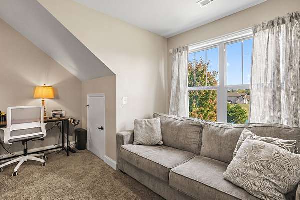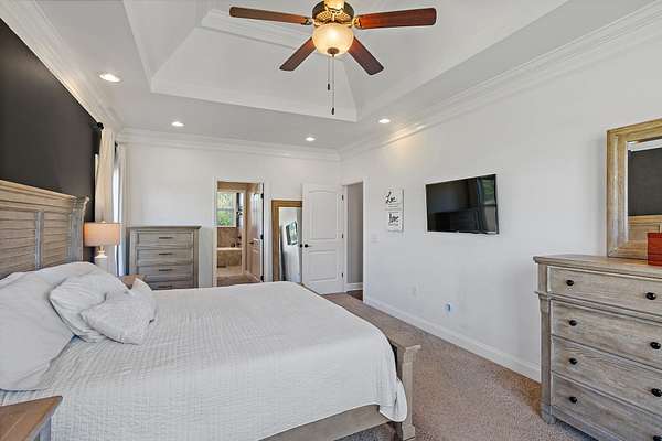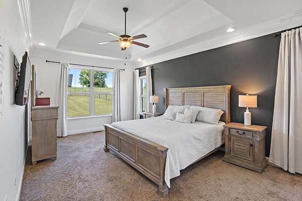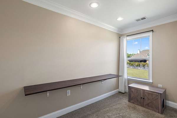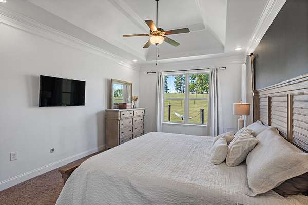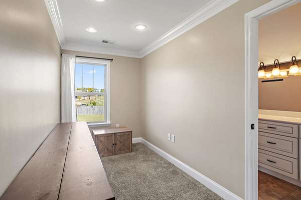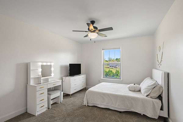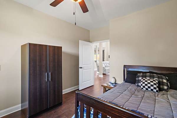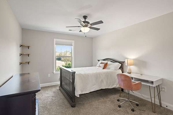 - Bookcases, Built-In Features, Ceiling Fan(s), Extra Closets, High Ceilings, Open Floorplan, Smart Thermostat, Walk-In Closet(s)