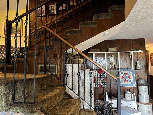Tucked away on 10 private acres, this country home blends rustic charm with comfortable living. Endless potential ready for a buyers personal touch. Featuring 5 bedrooms and 2 bathrooms, the home offers 2 separate living areas. Unique character details include beautiful rock columns and a wrought iron stair case. The expansive property provides endless opportunities for gardening, recreation, or simply enjoying the quite countryside. With the combination of space, charm, and land, this home is perfect for those looking for a serene retreat and a home they can implement their style in.