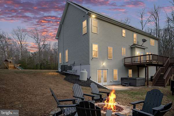 Imagine waking up each morning in your own private estate, surrounded by nearly 10 acres of serene beauty with no HOA. This stunning 4-bedroom (5th bedroom NTC), 3 and a half bathroom property offers luxury and comfort at every turn. The gourmet kitchen is the heart of the home, where the large island becomes the gathering spot for breakfasts or evening conversations. The built-in desk area is perfect for jotting down your to-do list. The family room, with its gas fireplace and surround sound, is where you'll unwind after a long day, whether it's movie night or simply curling up with a good book. The luxurious primary suite, where a cozy sitting area invites you to sip your morning coffee, includes a walk-in closet with built-ins and the spa-like en suite bath, complete with "his" and "her" vanities, a standalone soaking tub, and a Roman shower. As you walk through the home, the details catch your eye-5-inch baseboards, elegant crown molding, wainscoting, and the timeless charm of transom windows. Upstairs, the additional bedrooms are a dream come true, each with walk-in closets and built-ins, and the Jack-and-Jill bathroom ensures everyone has their own space to get ready. The upstairs laundry room, complete with a folding area and built-in sink, makes keeping up with chores a breeze. On weekends, the possibilities are endless. Stroll through your expansive property, or host friends in your backyard oasis. The saltwater pool sparkles in the sunlight, surrounded by a safety fence for peace of mind. The hot tub beckons for a relaxing soak, while the large deck and built-in fire pit are perfect for evening gatherings. The large pirate themed playground and fenced garden further enhance the outdoor space. Retreat to the fully finished basement. The rec room, complete with a wet bar, is the ultimate space for game nights or watching the big game. The secure office with biometric locks offers a quiet place to focus, while the updated bathroom adds convenience for guests. This home is as smart as it is beautiful, with a Nest Google thermostat system, a whole-home filtration system (2025), and a water softener. The new HVAC system (2025) keeps you comfortable year-round, and the solar panels with two Tesla batteries and an EV charger make living sustainably effortless.