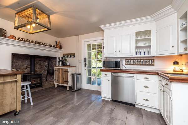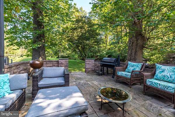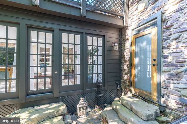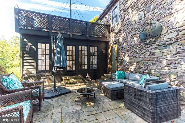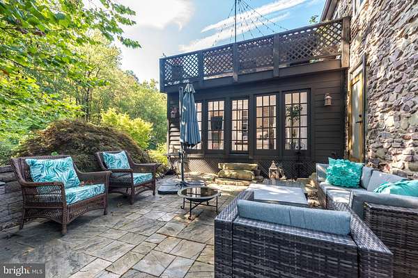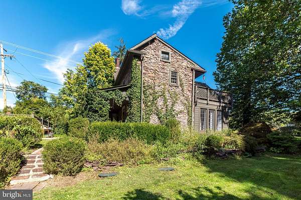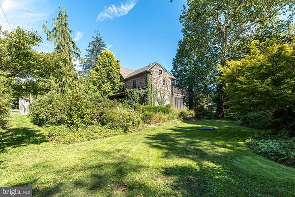 Historic Stone Farmhouse on 4.7 Acres with Creek, Gardens & Award-Winning School District Step back in time while enjoying modern comforts in this charming stone farmhouse built in 1875, beautifully situated on 4.7 private acres in the award-winning Palisades School District. The property is a true retreat, offering perennial gardens, two walking bridges, a flowing creek, and an original spring house. Outdoor living is at its finest with a patio, bricked fire pit area, second-floor deck lounge, and lush landscaped grounds, perfect for relaxing or entertaining. Inside, character abounds with original wide plank floors, exposed beams, and deep windowsills, blending seamlessly with thoughtful updates. The updated kitchen is anchored by a stunning stone walk-in fireplace, while the living room offers its own walk-in fireplace for cozy evenings. A formal dining room and a sunroom with exposed stone walls and direct access to the patio provide ideal spaces for gathering. Upstairs, the second floor features three bedrooms, including a master suite with private bath and walk-in closet, a hall bathroom, and a roof deck lounge overlooking the serene, landscaped grounds. Additional highlights include a new septic system installed in 2023 and a detached 2-car garage with second-floor storage space. Just minutes away, enjoy abundant recreational options such as the Delaware River, Canal, Ringing Rocks Park, and Lake Nockamixon, along with access to local farm stands and great eateries. This property offers a one-of-a-kind lifestyle surrounded by nature and timeless beauty.