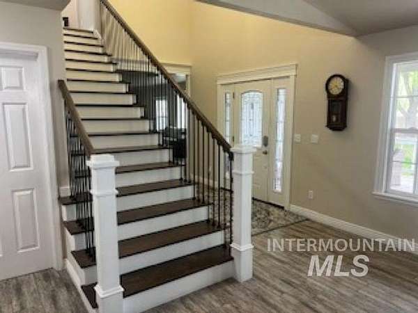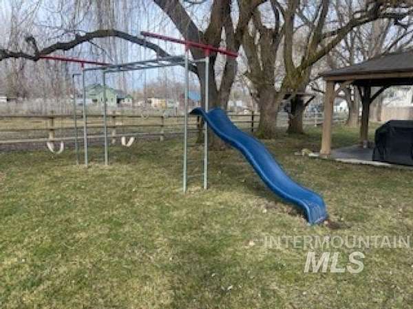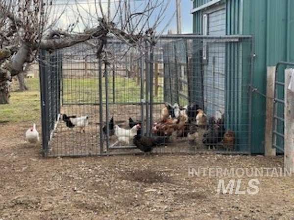 2.36 acres with no HOA/CCR's! Spacious 3822 SF two-story home featuring 5 bedrooms and 4 baths, including 2 en suites. Bright, open layout with large windows, wraparound porch and upper deck. Kitchen offers maple cabinets, granite counter tops, island and newer gas range. Expansive living room with wood burning fireplace and a large bonus room. Detached 2-car garage plus a 1200 SF Shop/Drive through shop (built in 2024). Fully fenced pastures, paved driveway, and ample parking for RV's, trailers, and equipment. Outdoor features include lighted gazebo, fire pit, playground, and automatic sprinklers. Private well and septic, water shares, irrigation, barn with power and chicken coop. Livestock allowed (horses, cows, pigs, sheep, goats). Gated private lane, orchard with apple/plum trees, and mature shade trees. Located in Middleton School District (4-day week schedule) on bus route.