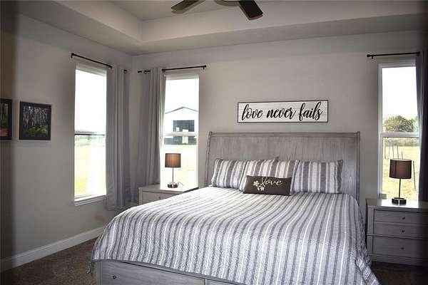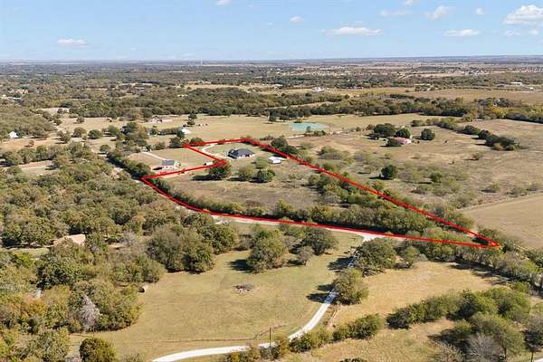 Your family will be overjoyed to make this 7+ acre country retreat home where the children can thrive in a wholesome atmosphere, attend the amazing Grandview schools, raise livestock for FFA or 4H projects, or bring the horses to the perfect sandy soil. The whole family will love to explore, hike or ride bikes on the trails in the treed, rugged terrain. Parents quietly begin the day on the porch, sipping coffee as the sunrise pierces the horizon and unwind on the back patio to the radiant hues of Texas sunsets, then slip away to the spa-like primary en-suite for ultimate relaxation. Stylish archways throughout, beautiful eat-in kitchen with island seating, loads of cabinets plus a coffee bar-beverage center. 5 bedrooms 3 full baths plus a half bath for access directly from outdoors. Bedroom upstairs with full bath and sitting area perfect for that teen wanting space. Fenced & cross fenced with barn for the animals and gather fresh eggs from your own hen house. Great location just minutes off of Texas Highways for easy commute in all directions. Make this your forever home today. Back side of acreage fronts CR 304 with separate address could be what you're looking for to build that in-law home.