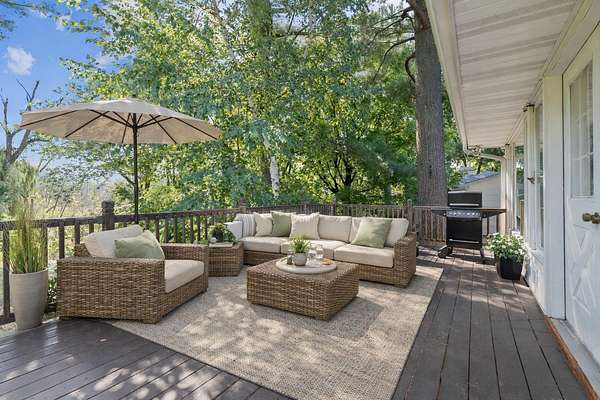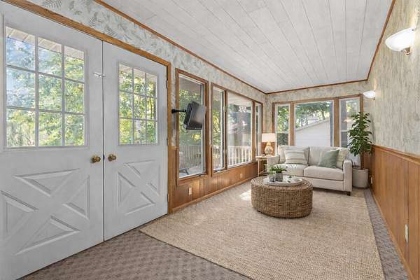 Nestled on 3.3 wooded acres along the Waupaca River, this 3 bed, 2.5 bath home offers serene living with stunning natural surroundings. The main level features a spacious living room with a cozy gas fireplace, a bright four-season room with patio doors leading to a deck, and an attached 2-stall garage. The finished lower level provides a pellet fireplace, laundry room, bonus room, half bath, and walk-out patio for easy outdoor access. With a new boiler installed in 2020, this home combines comfort and functionality in a peaceful setting with riverfront appeal. Well maintained and move-in ready, it's a rare find in Waupaca. Schedule your showing today!