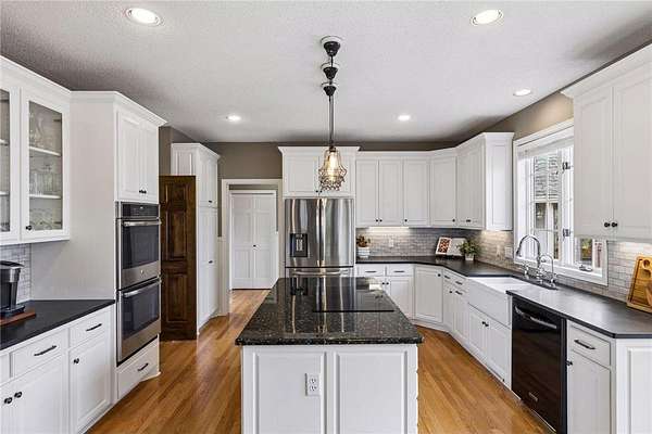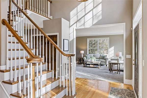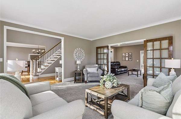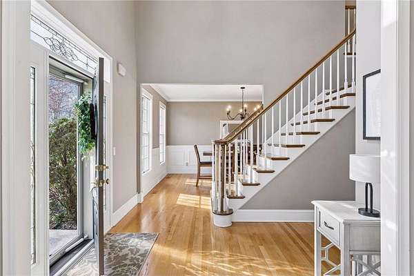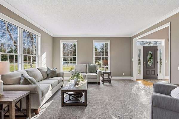 From the moment you arrive, the winding brick walkway and beautifully landscaped yard set the tone for what’s inside. Step through the front door and you’re welcomed by warm, light-filled spaces and a layout designed for both everyday living and memorable entertaining.