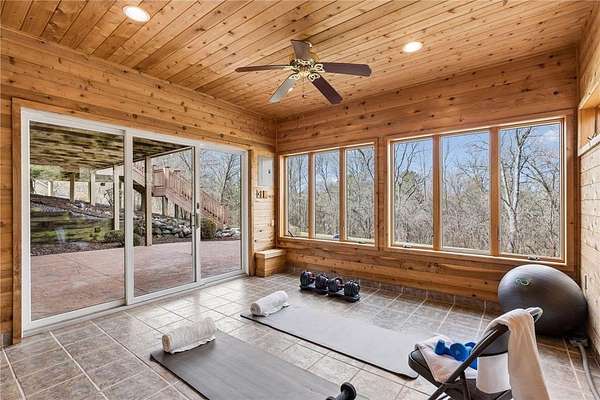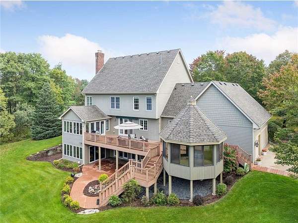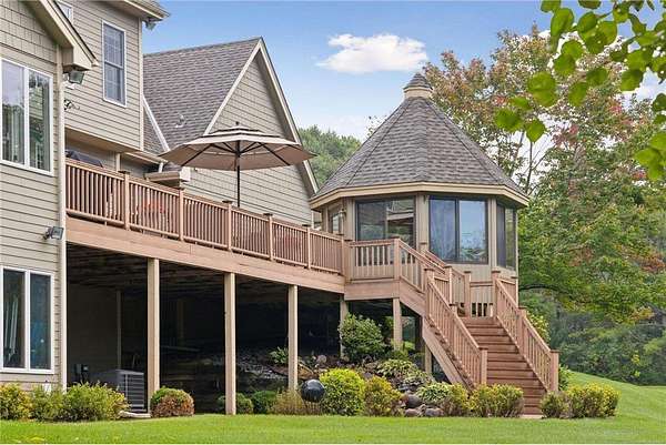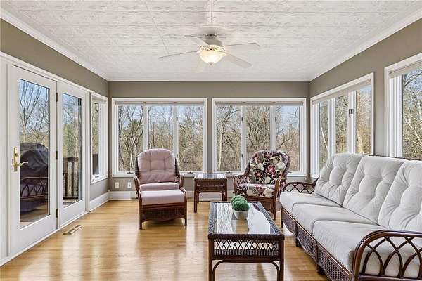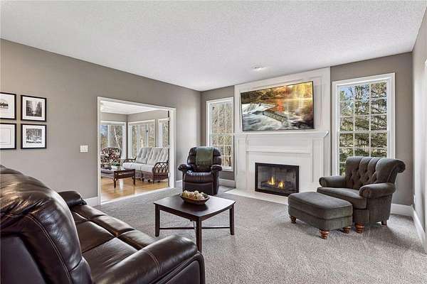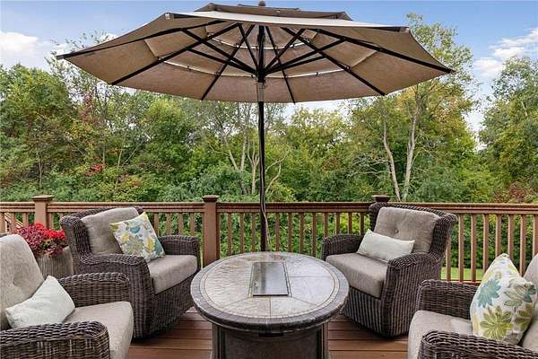 The heart of the home is the beautifully updated kitchen, featuring crisp white cabinetry, granite countertops, stainless steel appliances, and a spacious center island perfect for gathering. Multiple living areas, including a cozy fireplace setting and expansive lower-level family room, provide flexibility for relaxing, hosting, or working from home. The main level also features a sunroom just off the great room, filled with natural light and offering direct access to the expansive deck, ideal for enjoying the surrounding wooded views all year round.