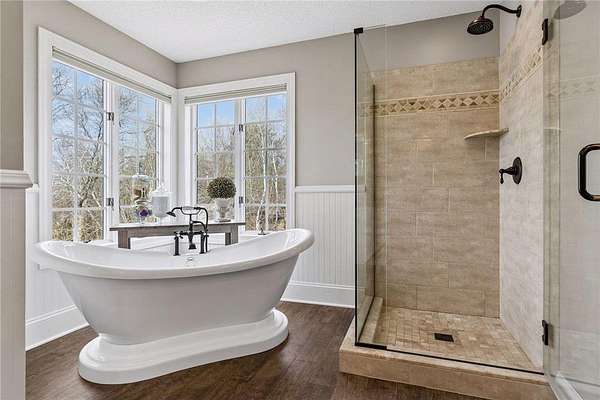 The generous living spaces and expansive layout provide flexibility for today’s lifestyle, whether you need multiple home offices, guest accommodations, or recreation space. The open-concept living areas create a warm and inviting atmosphere that flows effortlessly throughout the home. The primary suite offers a private retreat with two walk-in closets and an updated ensuite bathroom featuring a standalone shower and soaking tub.