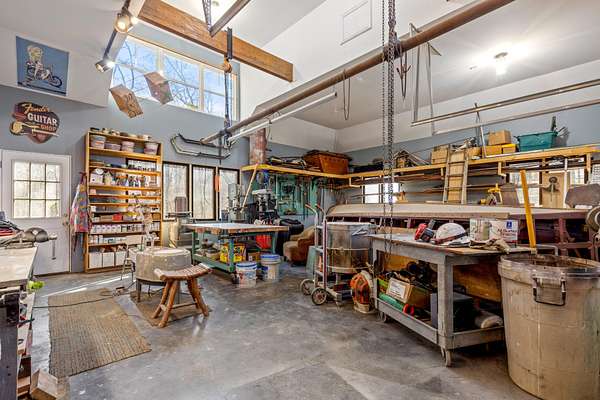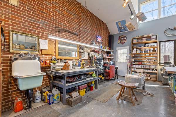A standout feature of this property is the dual garage setup, offering a standard garage on the left side of the home and a separate garage workshop on the right--ideal for hobbies, storage, or additional workspace.