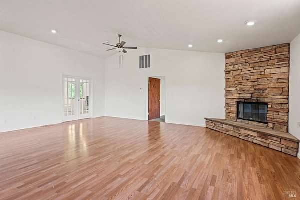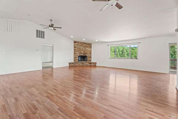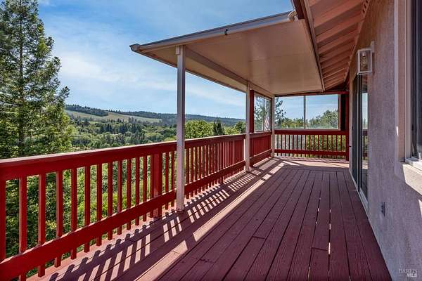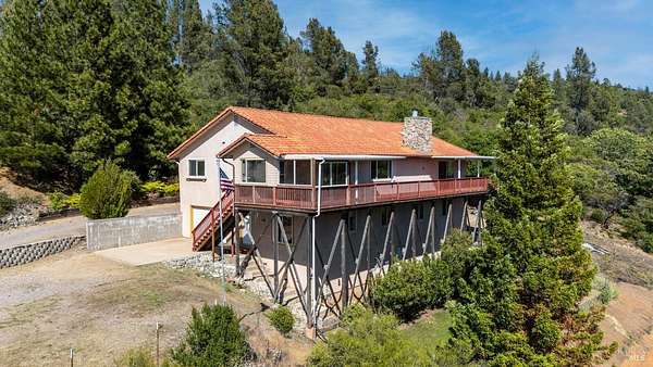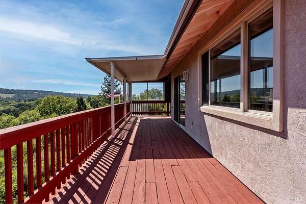 Welcome to your private retreat in Kelseyville! Set on 6.5 acres with stunning forested views, this spacious 3-bed, 2-bath home offers peace, privacy, and versatility. The open layout features vaulted ceilings, dual fans, and a cozy fireplace in the large living room. The kitchen boasts solid oak cabinetry, ample counter space, and a treetop-view window. Milgard windows and doors throughout provide energy efficiency and natural light. Enjoy indoor-outdoor living with a wraparound deck, ideal for relaxing or entertaining. The generous primary suite includes a soaking tub, double vanities and a spacious walk-in closet. Additional features include: extended depth/tandem garage, laundry room, and a full partially finished basement with room to expand the living space. Outside, you'll find a detached carport with RV hookups, a paved driveway, guest parking, and space for animals or gardens. A great-producing well ensures a reliable water supply. Just minutes from downtown Kelseyville, this move-in ready home is perfect as a full-time residence, weekend escape, or multi-use property.