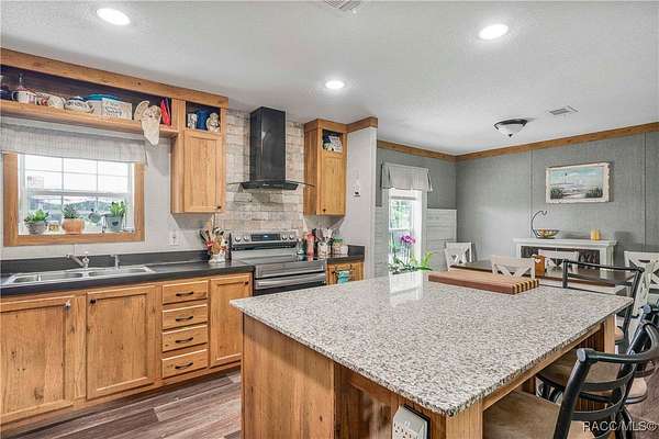 Price Reduced on this Relocation Sale and Seller is offering $5,000 towards buyers closing cost! Welcome to your brand new sanctuary, a stunning eco-friendly retreat nestled on a sprawling 2.5 acres between the charming towns of Gainesville and Ocala. This property is not just a home; it's a lifestyle choice that embraces sustainability without sacrificing comfort or style. As you approach this remarkable residence, you'll be greeted by mature landscaping that enhances the natural beauty of the surroundings. A convenient removable metal ramp provides easy access for all, ensuring that everyone can enjoy the serenity of this peaceful haven. The large storage shed with electricity offers ample space for your gardening tools or recreational equipment, making it perfect for those who love to embrace outdoor living. Step inside to discover an interior that beautifully marries natural wood tones with light greys, creating an inviting atmosphere filled with warmth and tranquility. The heart of this home is undoubtedly the expansive kitchen, featuring a generous island perfect for meal prep or casual gatherings. Imagine entertaining friends and family in this bright and airy space! The large back deck extends your living area outdoors, ideal for soaking up the sun or hosting summer barbecues while overlooking your lush landscape. After a long day, retreat to the master bathroom where you can unwind in the giant soaking tub-a true oasis designed for relaxation. This property also boasts modern conveniences such as a water filtration system and RV hook-up with 50 amps and connects to the septic tank making it perfect for those who enjoy travel or want to host guests with ease. Plus, with just a 30-minute drive to the Gulf Coast and minutes from Manatee Springs, Fanning Springs and Crystal River, you're never far from some of the world's best offshore fishing-an angler's paradise awaits! Don't miss out on this unique opportunity to own an eco-friendly home that combines luxury living with sustainable practices. Whether you're looking for tranquility in nature or adventure on the water, this property has it all!