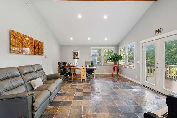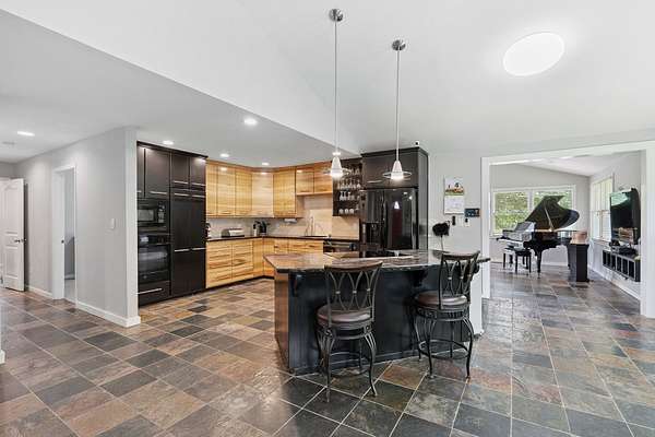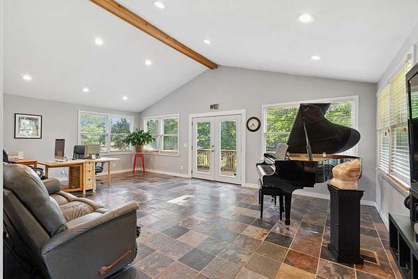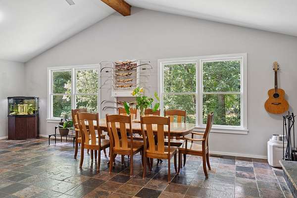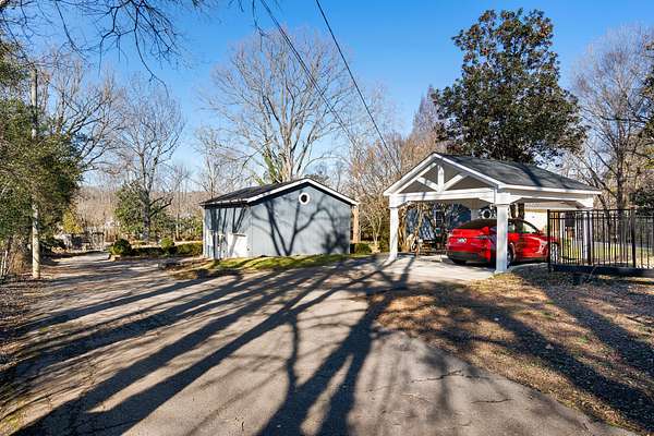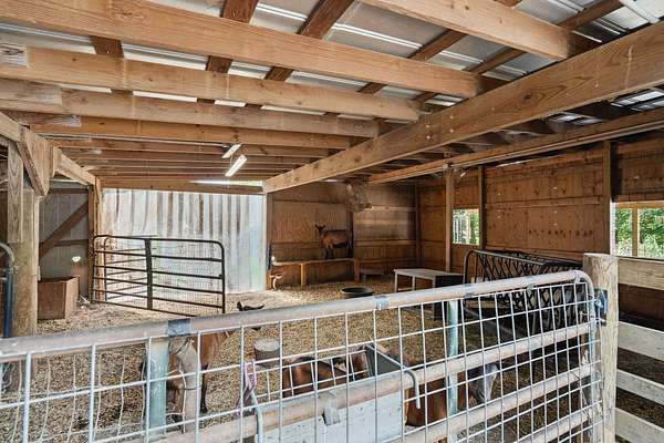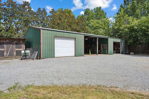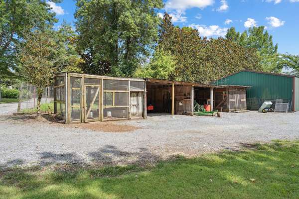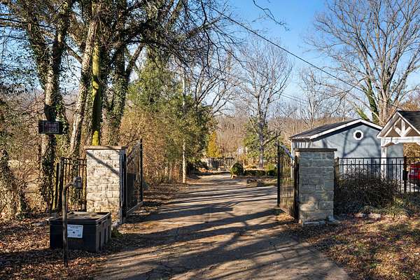 Welcome to 9032 S. Harpeth Ct, a private, gated retreat on 5 level acres offering the perfect blend of Southern charm, functionality, and natural beauty. This exceptional property is ideal for multi-generational living, hobby farming, or anyone seeking space, serenity, and modern conveniences. The primary residence has been tastefully updated and features an open floor plan, a newly remodeled kitchen, a new front door, two primary suites, two wood-stove fireplaces, and a beautifully renovated kitchen. Two decks are perfect for entertaining or quiet mornings in nature. A finished basement with private entry offers potential for an in-law suite or rental apartment. Outdoors, you'll find a vaulted covered parking area with an electric vehicle charger, plus RV/tour bus hookups for added flexibility. A detached garage/workshop features a full bath and a finished upstairs apartment with a kitchenette, making it ideal as a guest house or studio. Car enthusiasts and hobbyists will appreciate the two additional garages, featuring an open bay between them, which offers ample room for storage, tools, or toys. For animal lovers, this mini-farm is move-in ready with a 2-stall barn equipped with automatic water troughs and multiple fans, two fenced back pastures, an enclosed chicken coop, and a separate dove coop. Lush landscaping surrounds the property, with views leading toward the Harpeth River, located just 50 feet from the property line.