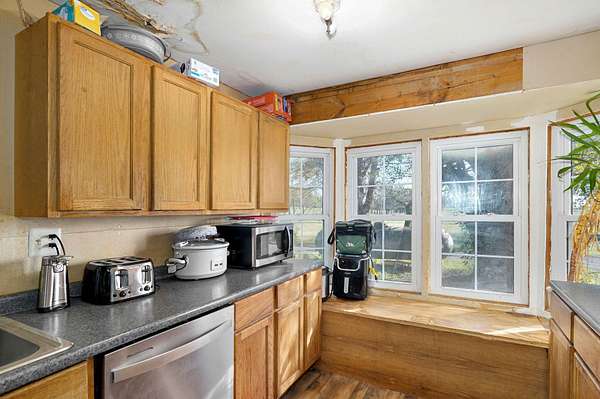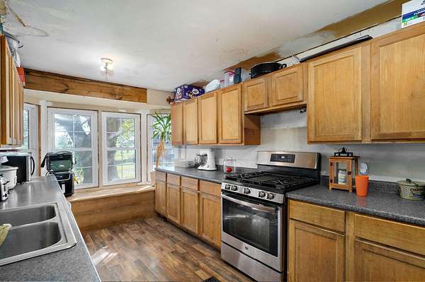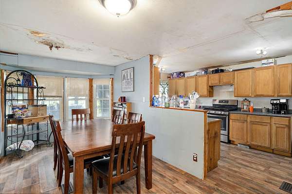 This home sits on 4.88 acres. Is over 1600 ft.. Features four bedrooms one bath. Three bedrooms down stairs, Possibly Two upstairs. Laundry on main floor. Kitchen has lots of cabinets and counter space. Nice Dinning room and a large living room. Large master bedroom. Very nice 60 x 40 barn/shop with concrete floors and electric. Also at one time had some Horse stalls. And still has a tack room. Great pasture, would make for a great mini-farm. Bring your livestock. Small pond as well. Home is being sold as is.