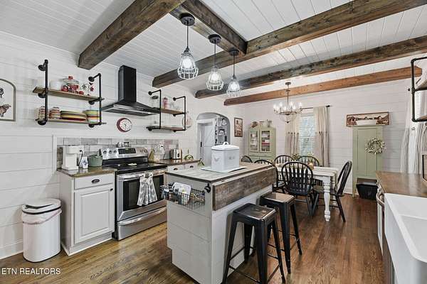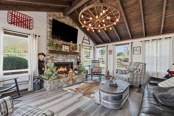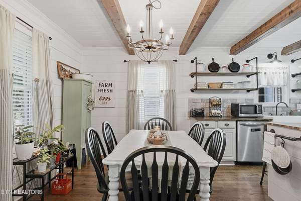 DESIGNED WITH DISTINCTION, VERY UNIQUE HOME IN THE HEART OF POWELL! Welcome to this beautifully maintained home nestled on 1.6 picturesque acres in Powell, this gorgeous property was previous know as the White Pickett Fence Venue, where they hosted weddings, showers, fall festivals and birthday parties, this is a perfect marriage of land and house, with your own park in a country setting, this property offers a perfect blend of vintage charming modern comfort, with original hardwood floors and luxury vinyl plank flooring throughout the main living areas, step into the spacious living room complete with a wood burning fireplace and exposed wood beam ceilings, creating a warm an inviting atmosphere, office or craft room adjacent to living room, the kitchen features a center island and continues the beam-accented ceilings, stainless appliances and vintage industrial iron pipe wall shelving, making it it a perfect gathering spot for family and friends, enjoy movie nights or cozy weekends in the large family room, boasting a beautiful stone fireplace and plenty of natural light, the upstairs level offers a private living area with its own bedroom, full bathroom, and living space-idea for guest, in-laws, or even rental income potential, outside, you''ll love the covered porch, ideal for entertaining or relaxing, the 1.6 acres gives you space galore for backyard play with room enough to grow your own vegetables, there's also a 2-car carport great for RV parking or use it as a hangout area-great for family gatherings, the detached 2-car garage, includes a workshop and finished man cave, offering space for hobbies, storage, or just unwinding, convenient location, short commute to stores and transportation, don't miss out on the awesome and unique home!