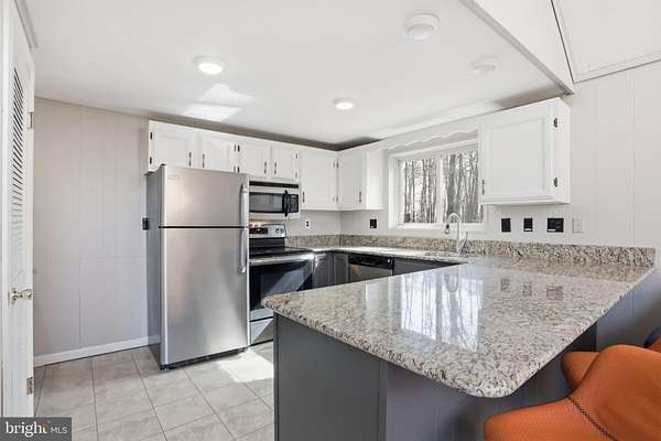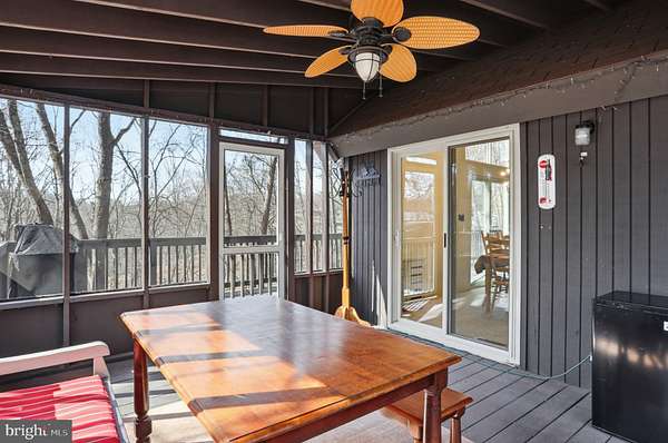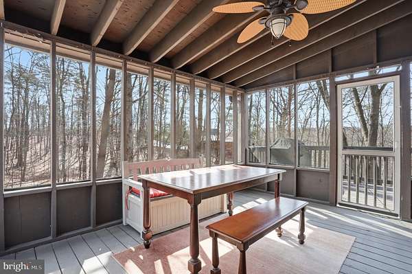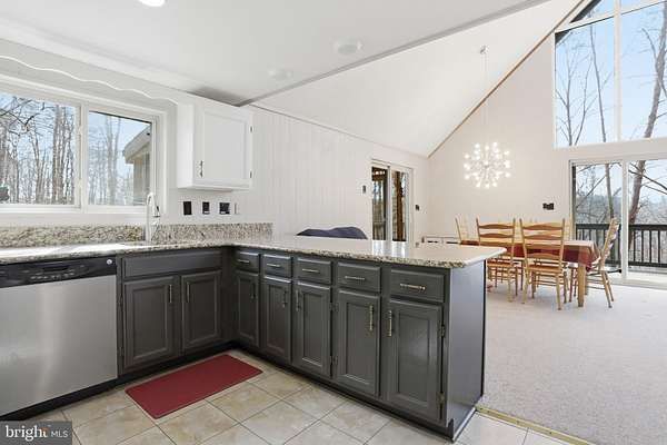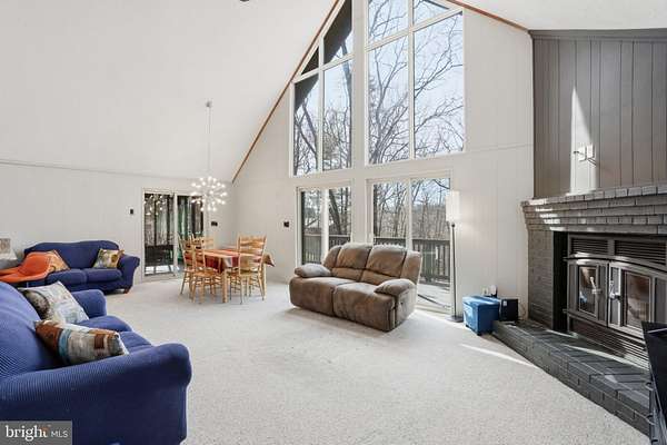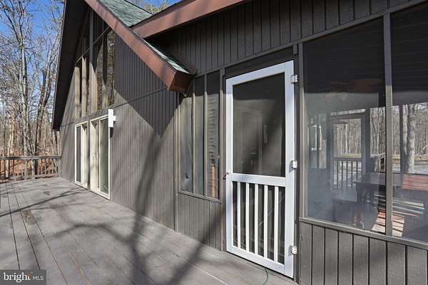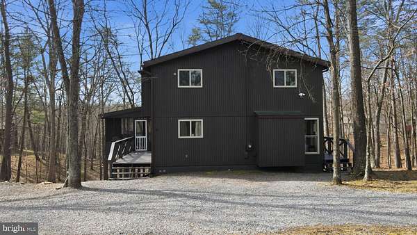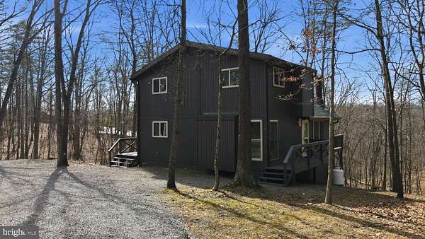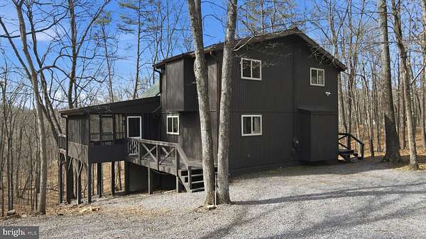 Popular chalet-style home in The Woods community situated on 1.9 wooded acres offering a private setting. This home features 3 bedrooms with the primary on the entry level, 2 full baths, and approximately 1,600 sq. ft. of living space. The great room is highlighted by vaulted ceilings, a wall of windows, and two sliding glass doors that fill the space with natural light and wooded views. A gas fireplace serves as the focal point, creating a comfortable and inviting gathering space. Kitchen includes granite countertops, stainless steel appliances, and breakfast bar. Upstairs bathroom includes a skylight, adding natural light to the space. Elevated deck and large screened porch offer outdoor living and entertaining space. Recent updates include decking, gutters with guards, updated windows, roof, and water heater. A Class B Membership is available for transfer, providing access to community amenities including indoor and outdoor pools, fitness center, and recreational facilities.