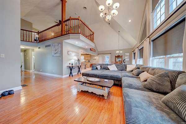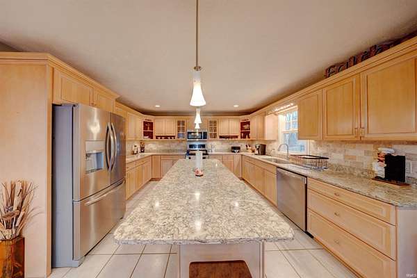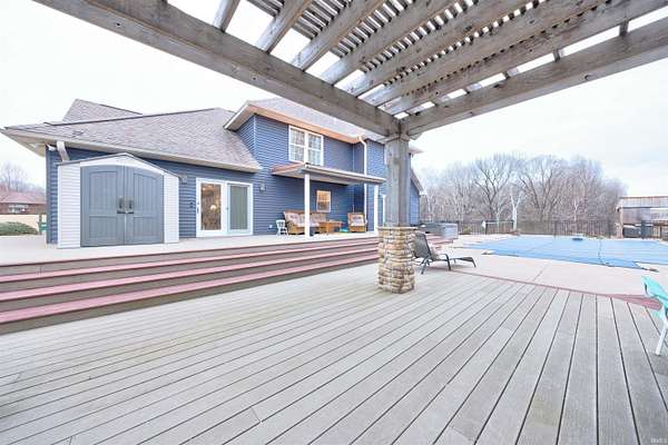 Perched high on a hill at the end of a quiet dead-end street, this custom-built two-story home on 10 acres offers exceptional privacy and panoramic views of the countryside and the Ohio River just outside Tell City. With over 4,000 finished square feet, this 3-bedroom, 2.5-bath home combines space, quality construction, and a setting that is difficult to replicate. The main living and dining area features a dramatic 17-foot cathedral ceiling and an expansive wall of windows that captures breathtaking views. The 16’ x 32’ open living and dining space is ideal for both everyday living and entertaining. The spacious primary suite includes a tray ceiling and private ensuite bath. The finished 1,300 square foot walk-out basement with poured concrete walls adds flexible living space and includes a fireplace with gas insert. The kitchen is well-appointed with quartz countertops and island, walk-in pantry, and access to the outdoor entertaining areas. Step outside to a large deck with pergola and gas fire pit overlooking the 16’ x 32’ heated in-ground pool a true retreat surrounded by nature. The property also features a 24’ x 40’ barn with electric and attached 11’ x 40’ lean-to. A rare opportunity to own acreage, views, and quality construction in a private hilltop setting.
