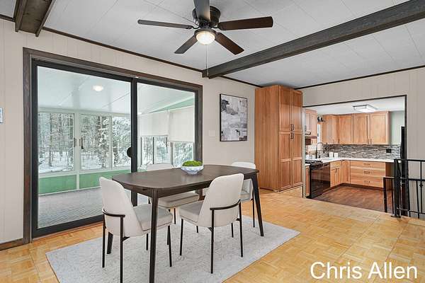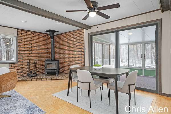 Private, peaceful, and thoughtfully updated, this 4 bedroom home boasts 3+ acres on a quiet private road. The impressive 45x50 barn with workshop offers endless space for storage, projects, or hobbies. Enjoy a three-seasons room, composite deck, lower patio with storage, and a circular pull-through driveway for easy access. Inside, the brand-new kitchen shines with solid hickory soft-close cabinets, quartz countertops, a composite sink, and all new appliances. Recent fresh paint, new flooring and carpet, and an updated bathroom create a warm, refreshed feel throughout. A cozy wood-burning stove anchors the main living room and Champion windows bring in abundant light. With major mechanicals, appliances, and the roof updated in the last five years-plus Rockford Schools-this home blends comfort, tranquility, and privacy. This is one you won't want to miss!