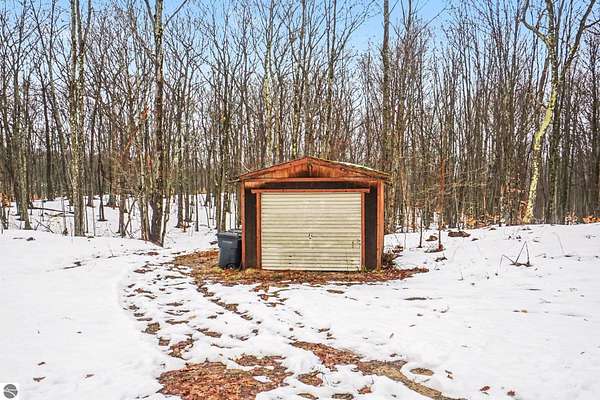 10 acres in Deer Lake Estates (near Leroy and Reed City). Property includes a 30' x 48' x 9' pole barn with 400-amp service, a 2-bedroom/1-bath singlewide trailer, a one-car garage and a storage shed. The trailer sits privately on a high point overlooking the pole barn; cleared areas around the trailer and barn offer an easy head start for expansion or new construction. Quiet association with Deer Lake access for canoeing, kayaking and fishing. Excellent year-round retreat with ample on-site storage for boats, ATVs and other toys--no more off-site storage fees. Association fee $200/year. Sold AS IS. No land contract or rentals.