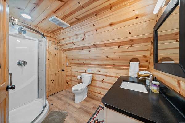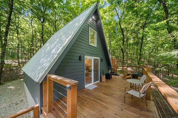 Ouachita Springs Cabins! These adorable cabins are nestled in the woods on approx 19 acres bordering National Forest land and are located just 4 miles from beautiful Lake Ouachita. Currently set up as an active short term rental with proven income. Two 600 sq ft cabins built in 2020 and one 800 sq ft cabin built in 2023. Each custom built cabin features full kitchen, bathroom and loft bedroom with hot tub and grill and are selling fully furnished minus a few personal items. Mulberry creek runs through the front of the property creating a peaceful setting guests love. Plenty of room to expand and add additional cabins or amenities. Gated entrance and perfectly located between Brady Mountain Resort and Crystal Springs and just a short 20 minute drive from downtown Hot Springs. Excellent opportunity for a turnkey investment or private getaway with income potential.