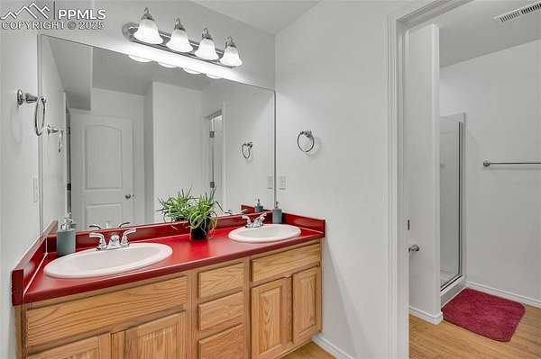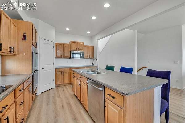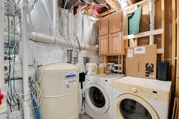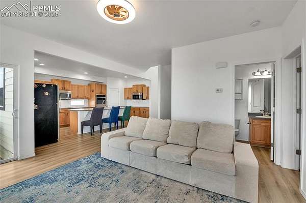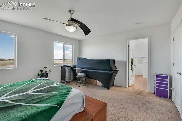 MULTI-GEN LIVING AT ITS BEST! With two primary suites and two laundry areas, this home is perfectly designed for comfort, flexibility, and privacy. Set on over 5 acres, it blends country charm with modern upgrades while keeping you just 20 minutes from the Powers Corridor for shopping, dining, and everyday essentials. The main level offers fresh paint, brand-new LVP flooring (7/2024), and an open layout connecting the living, kitchen, and dining areas. The kitchen is a true gathering space with a pantry, double ovens (2023), glass cooktop (5/2025), two built-in microwaves, a breakfast bar, and water line for the fridge. A bonus room off the living area is already wired for a projector and plumbed for a future coffee or wet bar. A main floor bedroom near the entry adds even more versatility. Upstairs, you'll find two oversized primary suites-each with walk-in closets and double vanities-one with a spacious five-piece bath. A non-conforming bedroom is ideal as an office or den, and the upper-level laundry adds convenience. The finished basement expands your living space with soft carpet, three additional bedrooms (one with a walk-in closet), a second laundry room, a large bath with double vanities and privacy door, and a huge flex area for play or entertainment. Comfort continues with a newer A/C unit (2024) and a regularly maintained whole-house water filter. Enjoy over 5,000 sq. ft. of fenced yard, a gated dog kennel, underground sprinklers in the front and back, a shed, and a workshop. A direct propane line makes grilling on the porch a breeze. The oversized garage is equipped with two 240V NEMA 14-50 outlets for EV charging or heavy tools, plus keyless entry for both garage and front door. Major upgrades include a new roof, new ejector pump, and updated cabinet hardware. Thoughtfully designed, quiet, and spacious-this home truly offers the best of multi-generational living with quick access to Schriever AFB, Peterson SFB, and Fort Carson (just 25 miles).