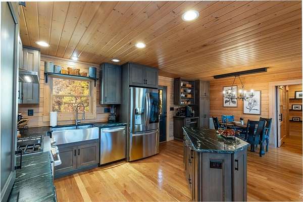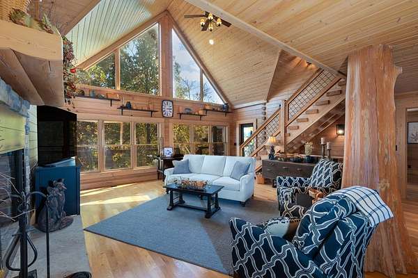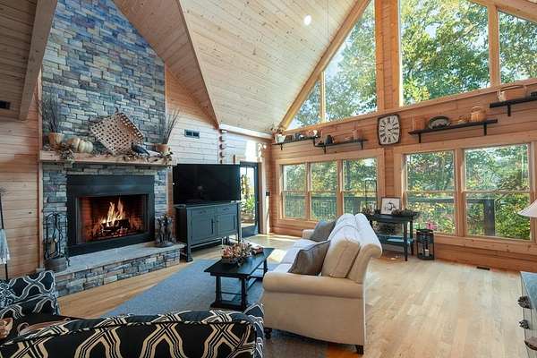 Private log home masterpiece on over 11 acres with multilayered mountain views! Nothing but the tranquil sounds of nature from the two tiers of decking, some covered and some uncovered, or from the new screened in porch. Inside you find cathedral ceilings with windows everywhere to allow an abundance of natural light and take advantage of the amazing views. The primary bedroom and bedroom two, along with two bathrooms are on the main level, bed and bath three on the lower level with two bonus rooms up top. The kitchen, primary bath, and laundry room have all been remodeled. Stairs have been added connecting the two decks that have new IPE boards and rails. New landscaping including an impressive fire pit, raised garden beds, nice stonework, and a potting shed. There's a new pole barn below to store a camper or tractor, with lots of firewood storage. Located centrally between Sylva, Cullowhee, and Webster, just a few minutes from Western Carolina University and Southwestern Community College. A short ride to other nearby towns with many opportunities for hiking, boating, fishing, and tubing. Great dining, breweries, shopping, concerts, and festivals are all nearby all year round!