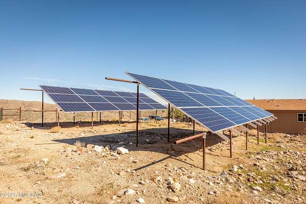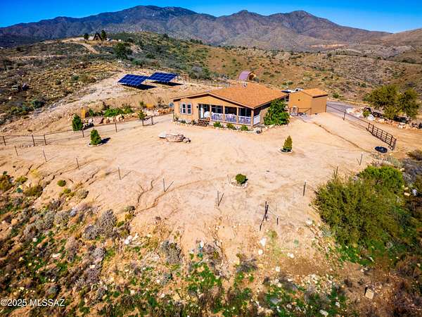 Welcome to your private mountain retreat with stunning 360 views. This custom 2021 manufactured home features an open family room, large kitchen island, and a split 3-bedroom floor plan. Situated on 68 beautiful acres with multiple potential home sites, a seasonal pond, and decomposed granite pit. Private well produces pure water at 28 GPM with a 3,100-gallon storage tank. Additional improvements include a 50'x50' Bunger steel workshop/garage with 12'' steel doors and a half bathroom--perfect for heavy machinery and up to six vehicles--and a functional 640 sq.ft. horse barn w/attached corrals. 2 Additional storage buildings hold the all the solar equipment and water storage. This Home is READY TO GO OFF GRID!! 70 miles to Mesa and 60 miles to Apache Junction. Open Range-HUGE discount on property taxes.