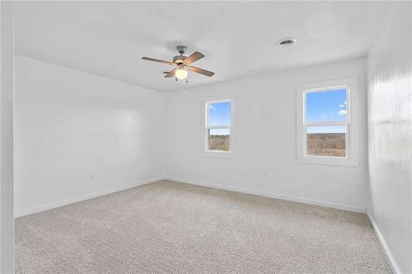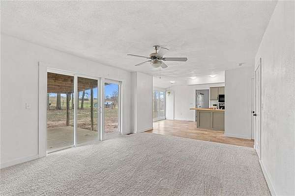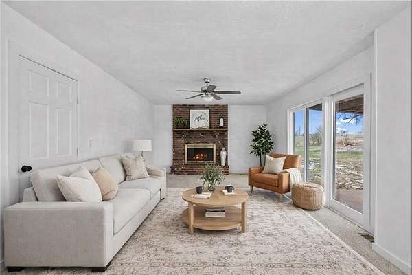 Welcome to peaceful country living on 10 beautiful acres! This charming two-story home offers lots of space, updates, and the freedom to truly enjoy your property. Featuring 3 bedrooms and 2.5 baths, you'll love the large room sizes and thoughtful updates throughout. The kitchen has been refreshed with new cabinetry, butcher block countertops, and a clean look. Brand new carpet, updated light fixtures, ceiling fans, and new windows make this home truly move-in ready. The main level offers an inviting living room centered around a large fireplace, creating a warm focal point, while an additional oversized living area provides flexibility for entertaining or relaxing. A formal dining room sits at the front of the home, perfectly positioned to overlook the covered front porch, ideal for gatherings and everyday enjoyment. Large laundry area and mud space to kick your shoes off when you come in the door. The spacious primary suite includes double closets and a refreshed bathroom with a double vanity. Step outside and take in the beauty of the land, complete with a pond, a 48X30 Morton building, and an additional yard shed for all your storage or hobby needs. Relax or entertain on the covered back patio, the perfect spot to enjoy quiet mornings or peaceful evenings overlooking your land. Sellers would like to sell as is.