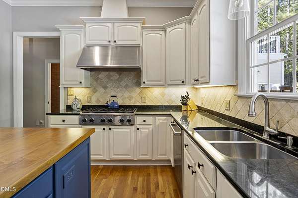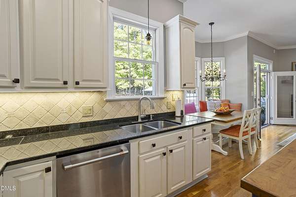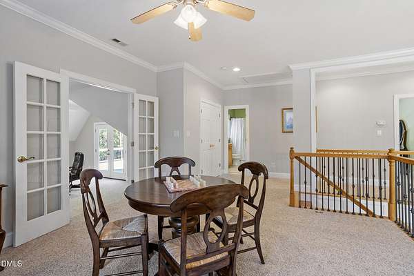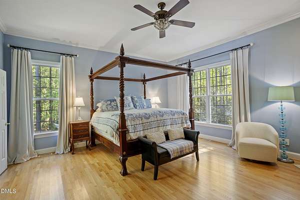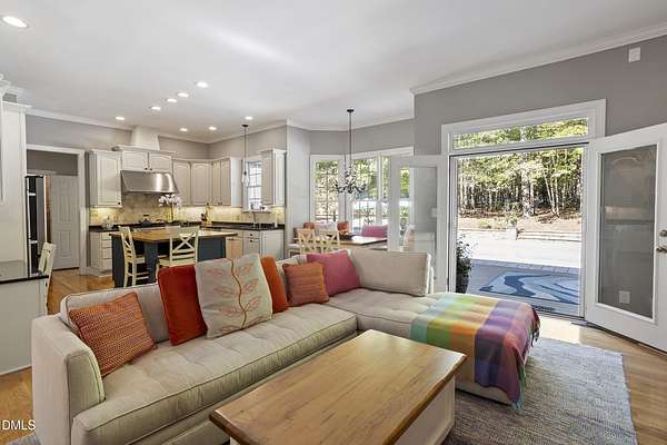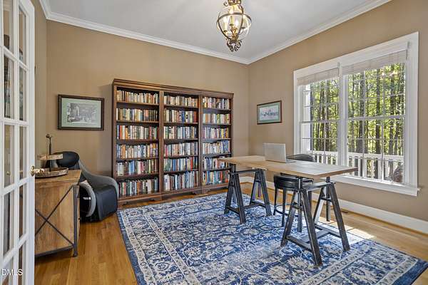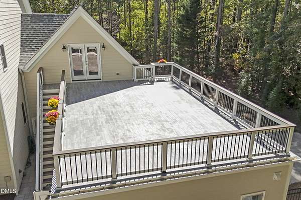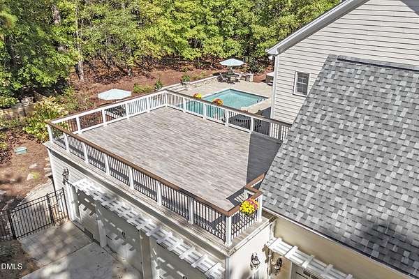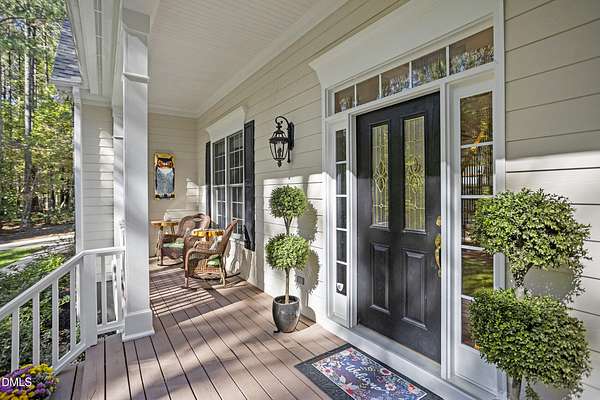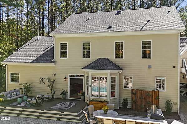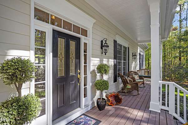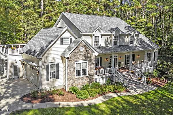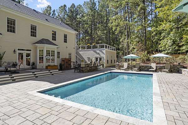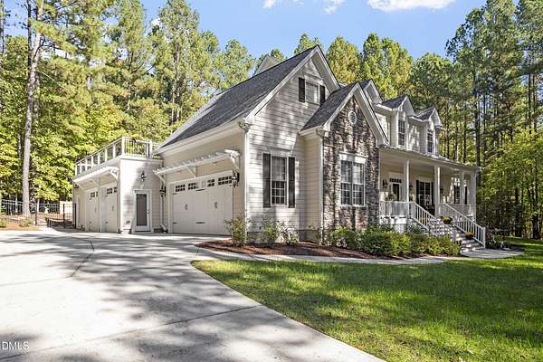 Dreams really do come true! Once in a great while, a property comes along that is so special that you just can't stop thinking about it. 905 Olde Thompson Creed Road is that property. Amidst all of the vibrant Apex/Cary/Chatham County activity exists an oasis. Tucked away in a boutique neighborhood with custom-built homes on large homesites, the property is very private. The cleared and landscaped area around the home features a spectacular hardscape offering with swimming pool. The rest of the acreage is wooded with a nice mix of mature hardwood trees and pines. The rocking-chair-style front porch overlooks the private front yard where you can sit and enjoy the temperate North Carolina weather. At the back of the home, you'll find a large deck, paver patio, inviting in-ground heated salt-water swimming pool, grilling area, and hot tub. There is also plenty of gardening area. Grow vegetables or your own supply of fresh flowers. In addition to the almost 4,000 square foot home with its 2-car attached garage, there is a second attached 2-car garage with a cabana and massive second floor deck. Do you enjoy woodworking or collecting vintage cars? Own a boat, kayaks, or bikes? This building will suit all your hobby and storage needs. The inside spaces of this home are equally amazing. It is custom built and features an open floorplan. The entry foyer is like a page from an architectural digest with a split stairwell with wrought iron spindles, large elegant chandelier, and cathedral ceiling. The dining room is delineated by beautifully-crafted cased openings and beadboard wainscoting. It is big enough to accommodate a large dining table for holiday gatherings. The family room is spacious and features a cozy fireplace. The kitchen has a farm-house feel. It is open to a large breakfast area which overlooks the verdant backyard. There is an island with designer wood countertop. The kitchen is a chef's delight with loads of cabinets and counter space, and a very large walk-in pantry. The kitchen has all stainless steel appliances including dishwasher, double-ovens, and Dacor gas cooktop. There is a convenient home office/music room with French doors on the main floor. The primary suite is also on the main level. It features a luxurious bath, walk-in closet, and gas-log fireplace with marble surround. The primary bath has tile floor, a large corner whirlpool tub, and a separate shower. A powder room and a large laundry room with sink complete the main level. The second floor offers the same level of architectural detail and elegance as the main floor. One stairway leads you to a generously sized loft area--perfect for relaxing, reading, and gaming. Adjacent to the loft is a bonus room. The bonus room is large enough to accommodate a pool table, and could serve as recreation room, a second home office, TV/media room, or be utilized as a playroom. There is also a bedroom and full bath on this level. The second stairway leads to additional bedrooms and a full bath. There is also a recreation room with ample attic storage space on both sides. The home has a 4-bedroom septic permit, but a total of six bed/bonus/flex/office rooms that can be used in a variety of ways. The home lives large yet feels cozy and intimate. It is a great home for entertaining, and also for quiet time with family. Step out into the outdoor living area with a heated, salt-water swimming pool, outdoor dining space, and hot tub. Enjoy relaxation, meditation, entertainment, exercise, or just personal well-being. Jordan Lake, Research Triangle Park, RDU International Airport, and charming downtown Apex are all about an eleven mile drive.