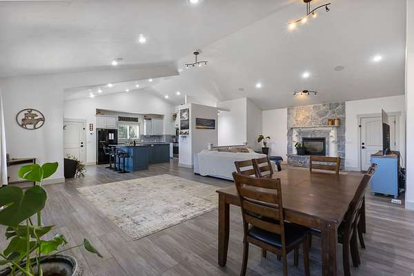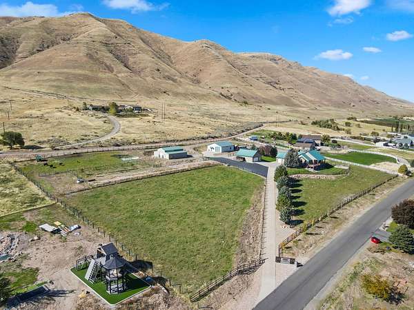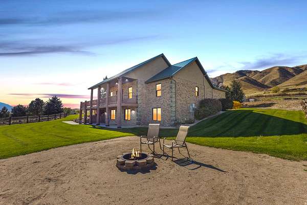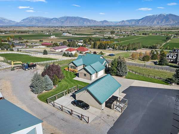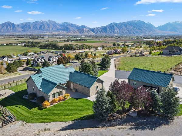 This home is being featured on "Real Estate Essentials" on ABC4, HULU+Live TV and Telemundo Utah Video and a MUST SEE 3D virtual tour also available. If you've been looking for a home that is the complete package, you've found it! This serene 5 acre retreat offers breathtaking valley and mountain views, a beautifully remodeled open concept home, and the perfect blend of luxury and tranquility. Features include a chef's kitchen with quartzite countertops, a primary suite with dual walk-in closets, a finished basement with a dry bar and fireplace, a covered balcony above and a covered porch/patio below both of which allow you to enjoy the enchanting views, and a fire pit that makes every moment feel truly magical. Additional highlights: Separate kitchen pantry, 50 year metal roof, 7.97 shares of water, a well, an attached 3 car and detached 2-4 car garage, a custom cedar & redwood sauna, a 40 x 40 workshop, a 60 x 40 barn with 2 lean-to's, RV parking, various fruit trees, Bluegrass & Alfalfa ideal for grazing and a generator inlet. Homes like this don't come along often, don't miss the opportunity to make this dream home yours!