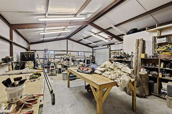 This beautiful 4- bedroom home sits on 5 acres, offering the perfect blend of country charm and convenient location. Inside, the spacious bedrooms are perfect for each family member or a private home office. The master bedroom features it's own private patio, giving you 2 great spots to enjoy your morning coffee while taking in the tranquil views of the mature trees and green grass. Outside, the impressive workshop with an office is ready to inspire your next project. Need more storage? A second outbuilding has you covered. The Garage includes a carport and extra parking spaces, ensuring every guest has a spot during holiday gatherings. Enjoy being close to shopping, yet completely secluded in your own tranquil personal retreat.