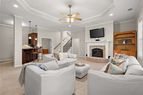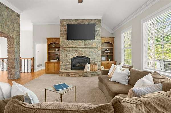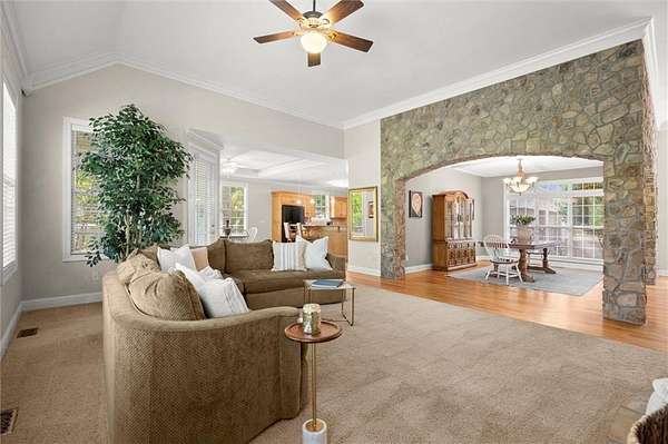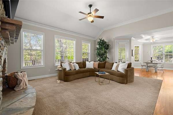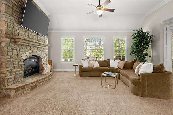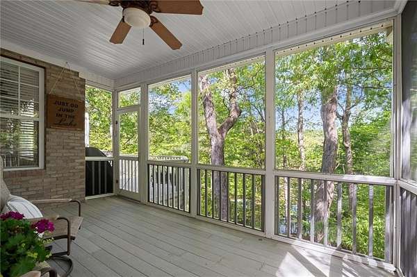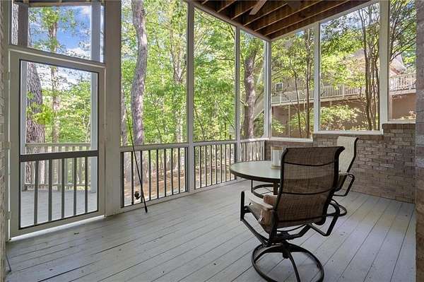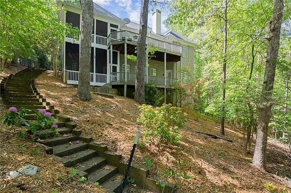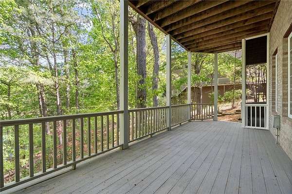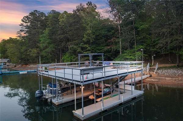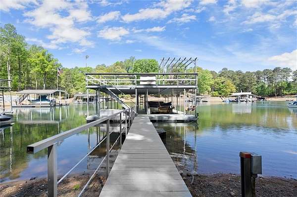 Offered for the first time since its custom construction, this four bedroom, 3.5 bath, private Lake Lanier home sits on a rare 2.25-acre double lot with the core line extending to the middle of the backyard, providing a broad and protected setting with deep water access. The four-sided brick ranch spans approximately +/- 4,500 square feet and features tall ceilings, spacious living areas, and a flexible layout designed for both entertaining and everyday comfort. Interior highlights include stone and brick fireplaces equipped with enclosed gas logs and forced-air systems for additional warmth and efficiency. Expansive double decks and two screened porches overlook the property and lake, creating seamless indoor-outdoor living. The home features a separate door off the garage to a fenced courtyard perfect for a dog run. A permitted cart path and lighted walkway lead to a covered 32x32 two-slip party dock with jet ski pad, boat hoist, and deep water. Recent updates include a new roof (2025) and new HVAC systems (2024). Additional features include epoxy garage floors, and custom cabinets, maintenance-free Trex decking braced for a future hot tub, an oversized water heater, newer double ovens, another space above the garage and a three-car garage courtyard entry. Well maintained and in great condition, the home offers an opportunity for cosmetic updates while benefiting from strong construction, exceptional land, and a highly desirable waterfront setting. First time on market. Double lot. Deep water. Easy lake access. A retreat for generations. A rare opportunity to become part of a story already beautifully begun.