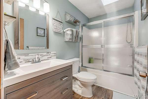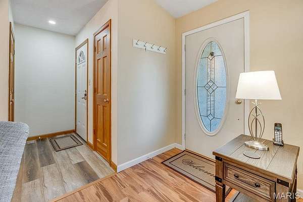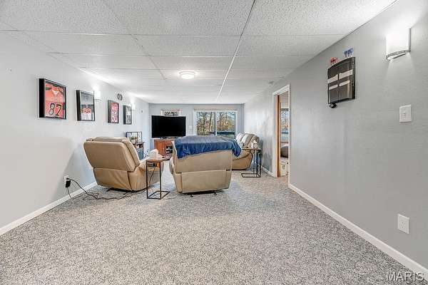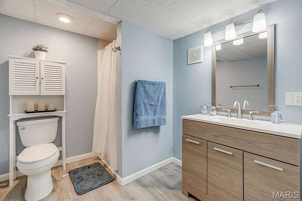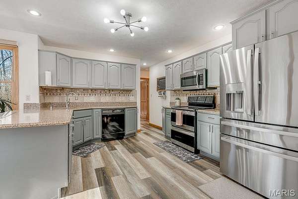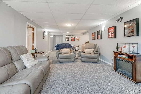 Inside, you'll find 2,620 sq ft of living space, including a finished walk-out basement with approximately 1,000 sq ft - providing flexible living or recreational space. The split primary suite design offers privacy and includes a walk-in closet, double vanity, and whirlpool tub. Cozy evenings await in the living room with a wood-burning fireplace. The updated kitchen has solid surface countertops, tile backsplash and a breakfast bar! New bedroom carpeting, and refreshed laundry room and bathroom floors add a modern touch.