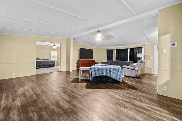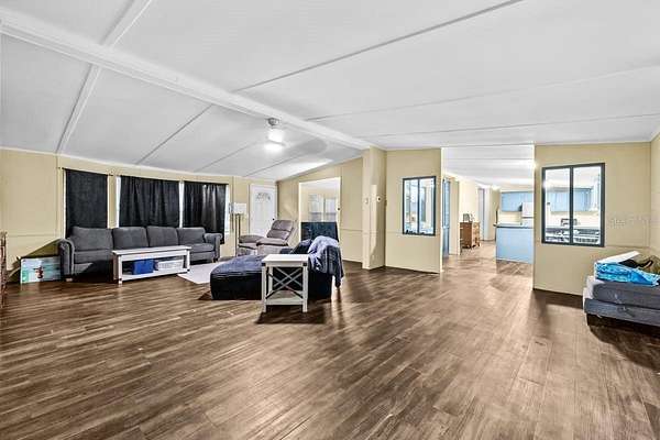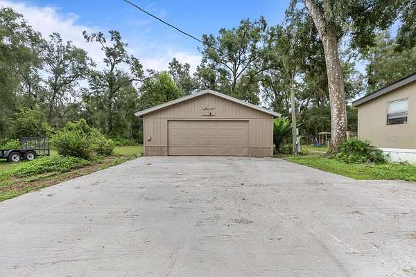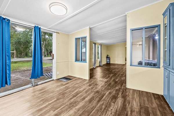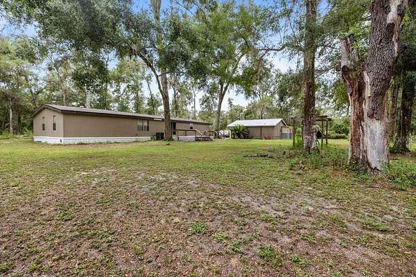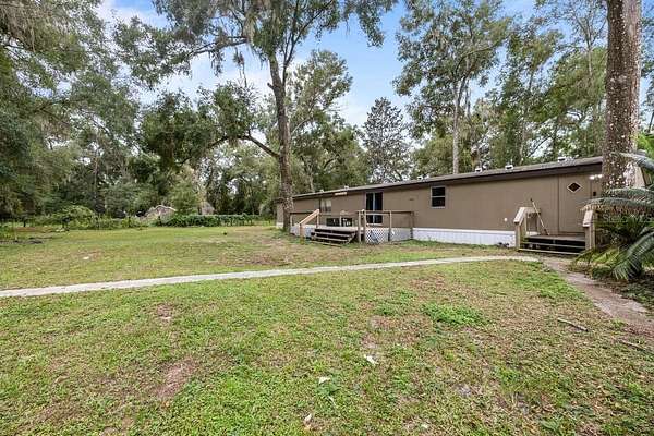 Welcome to 9056 Rosco Trail, where nature, privacy, and possibility all meet. This 3-bedroom, 2-bath manufactured home with a spacious bonus room sits on 2.7 acres that backs directly up to the Withlacoochee State Forest, meaning you'll never have to worry about someone building behind you. With trails just steps away, it's the perfect spot for outdoor enthusiasts, horse riders, or anyone craving a connection to nature right outside their front door.