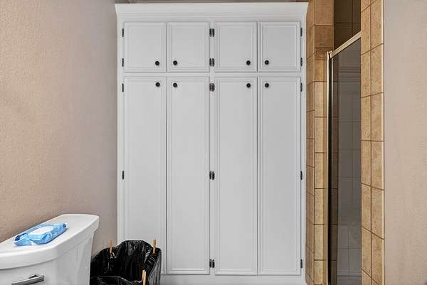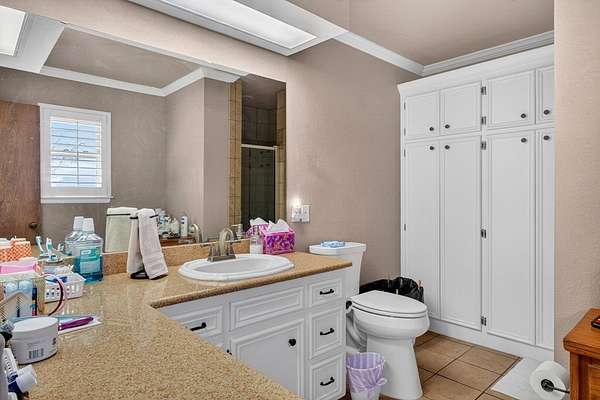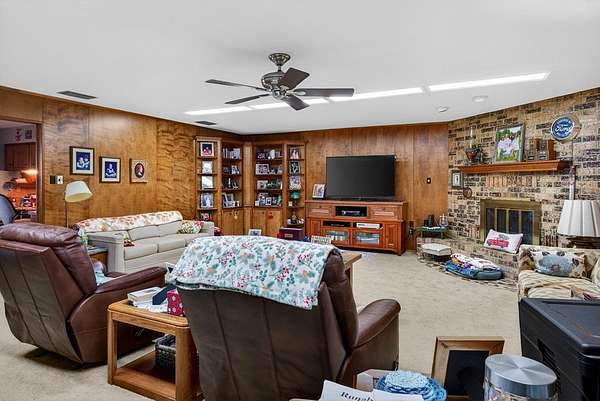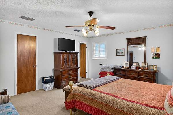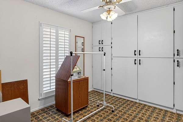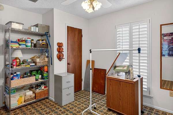 - Auto Garage Opener, Book Cases, Carpeting, Ceiling Fan(s), Pantry, Smoke Detector(s), Tile Flooring, Water Softener-Owned, Wood Shutters