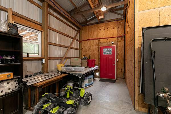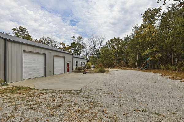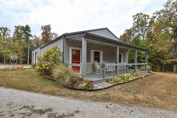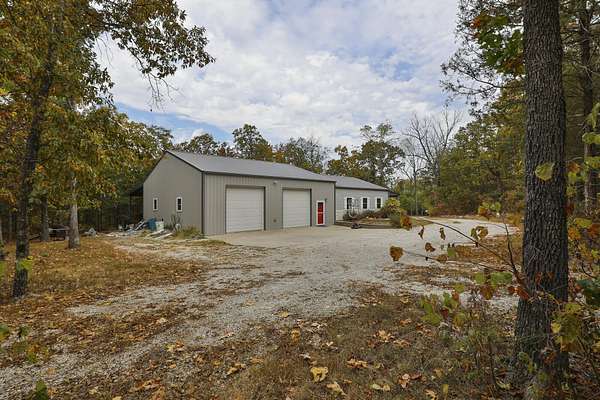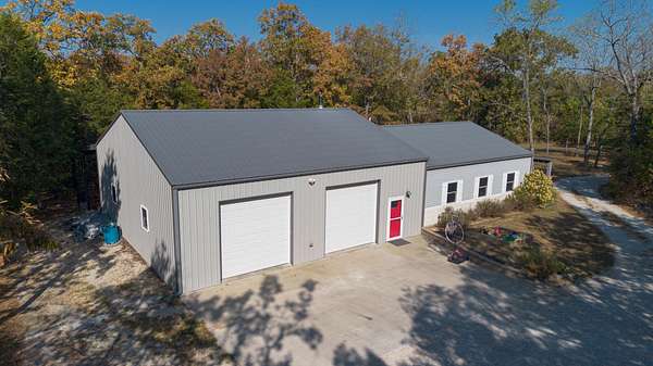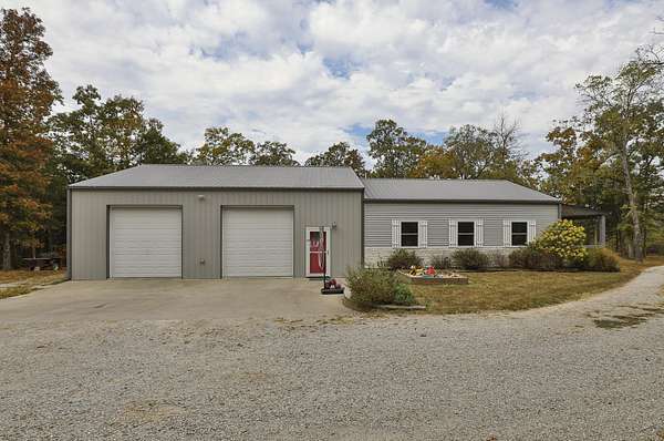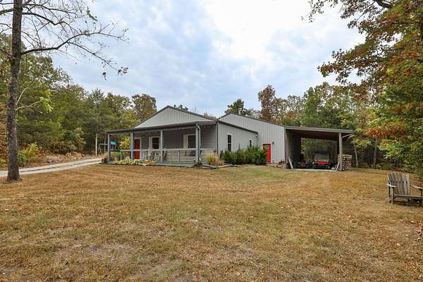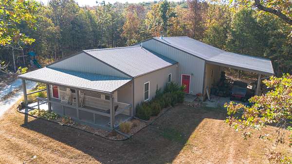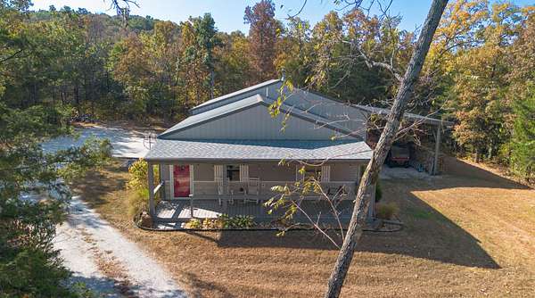 OPEN HOUSE -SATURDAY MARCH 28TH 1-3PMBeautifully built barndominium-style home situated on 12.22 private and secluded acres with a wet-weather creek, located 12 minutes from I-44 with easy access to Hwy 65 and Hwy 13. The home features 1 large primary bedroom with an expansive closet and laundry area, 1 full bathroom, a bonus room with cedar loft currently used as a non-conforming bedroom. This bonus room is an additional approximately 400sq ft, making the home 1300 sq ft total. Enjoy the spacious open-concept living and kitchen area. A heat pump and wood-burning furnace are located in the utility room within the garage.Property includes an extra-large 3040 two-car garage with shop space and a separate wood shed. An oversized septic system offers potential for an additional structure or guest home (buyer to verify with planning and zoning). Exterior improvements include a 164012 lean-to with water, electric, and septic hookups for an RV.Property offers excellent recreational opportunities including deer and turkey hunting, along with privacy and natural surroundings. Several peach and apple trees are also located on the property.Home also includes a water softener, carbon filtration purification system, and reverse osmosis system.All appliances except refrigerator, washer, dryer, freezer, and some garage shelving are reserved.This peaceful acreage in a great area offers privacy, flexibility, workspace, and outdoor recreation--a must-see to appreciate.
