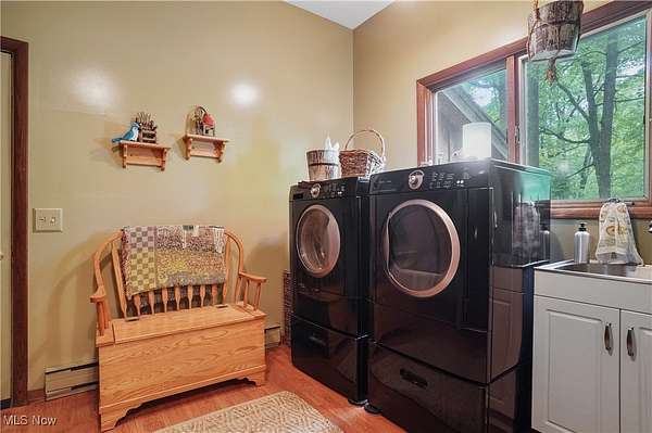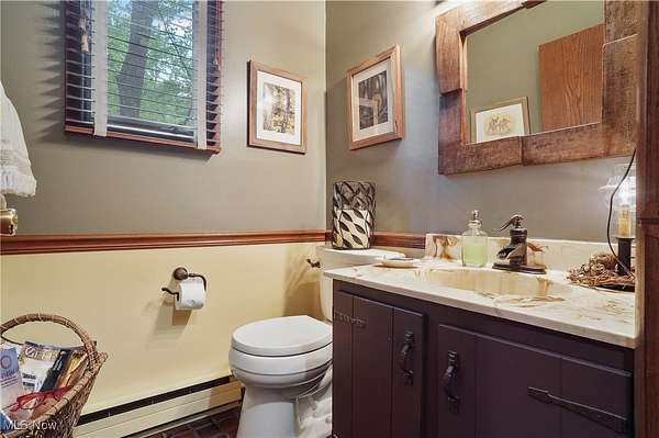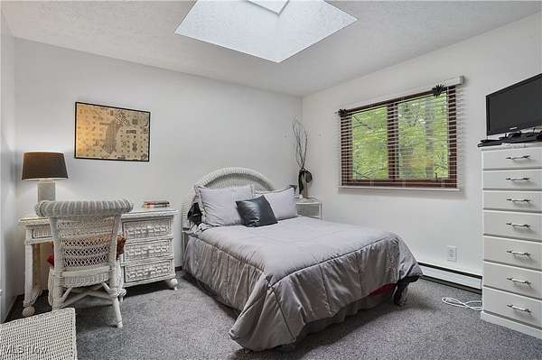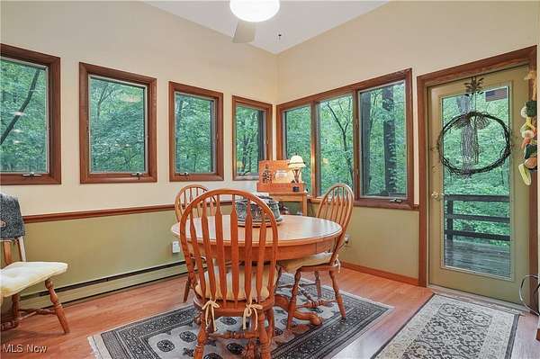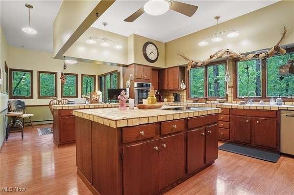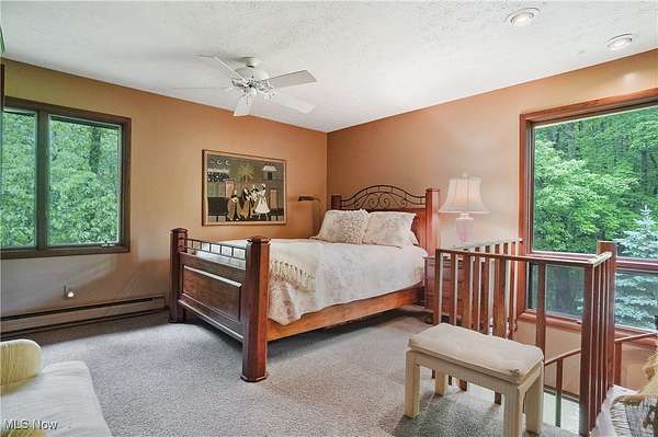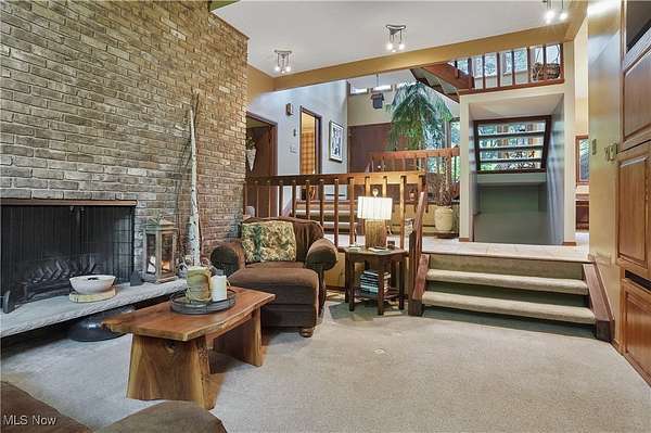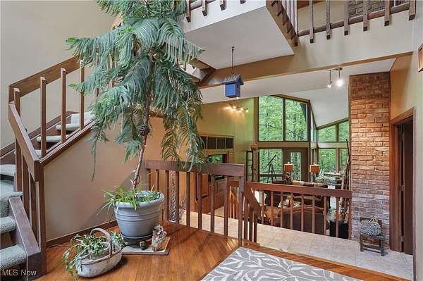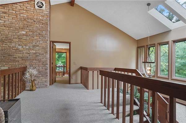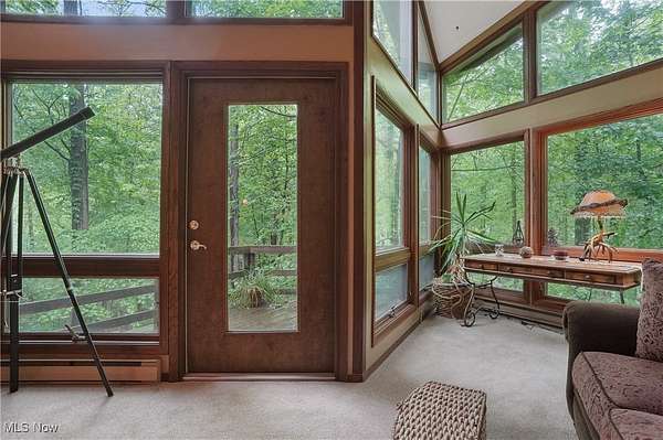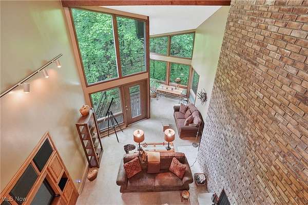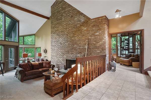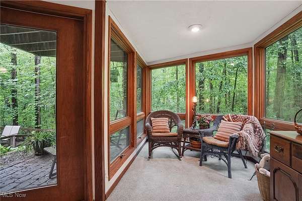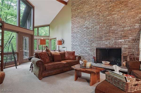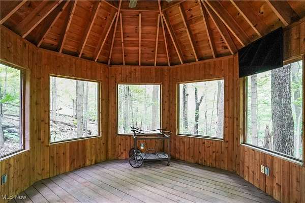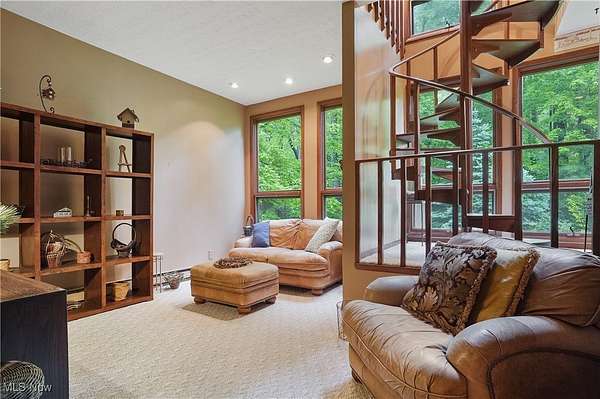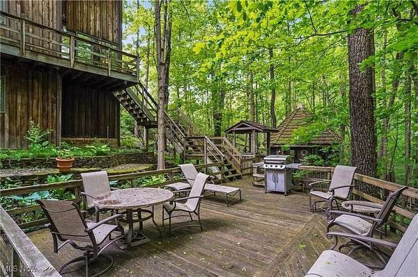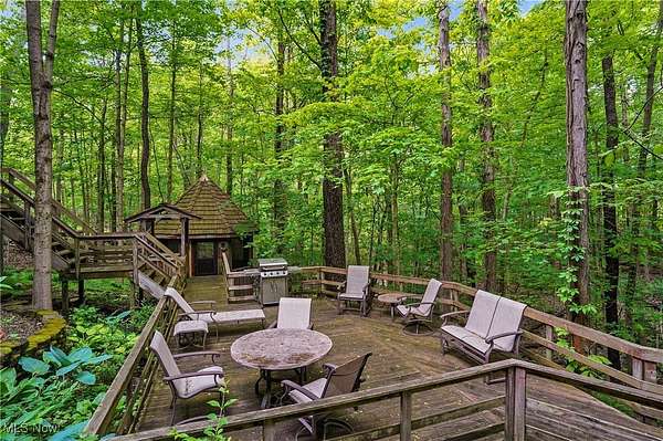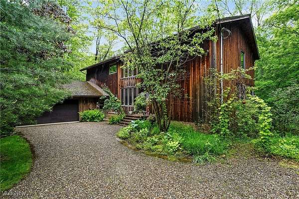 Become one with nature with this uber private, one-of-a-kind cedar build home on 4.5 wooded acres at the end of winding, private drive in Bath Township. Designed by local architect Jerry Ryba and custom built by Loren Lapp, this 4 bedroom, 2.5 bathroom nature-lover's paradise is perfectly secluded, but ideally located minutes from all that the Montrose/Fairlawn area has to offer. Two story foyer with open staircase leads to impressive great room with expansive, floor to ceiling windows, wood burning fireplace, and entertainment wall. Spacious kitchen features large center island, ample storage and prep areas, full suite of appliances, breakfast nook with an abundance of natural light, nearby dining room, 1/2 bath and laundry. Cozy, private living room and adjacent office with built-ins complete the first level. Master bedroom features large windows and glamour bath with tiled shower. Three more generously sized bedrooms and a full bath with double sinks and tub/shower combo make up the second floor. Bright and open lower lever with wood burning fireplace, access to outside, billiards room, workout room, workshop, utility area, wine storage, and access to garage. Exterior highlights expansive decking, gazebo, stone terrace gardens and walkways, outbuilding, basketball court, and playset. Notable highlights/updates inc: central vac system, 300 amp elec panel (24), 80 gal hot water tank (22), gutter guards, Andersen windows, multiple skylights, and transferrable mineral rights. Award winning Revere School District. Don't miss this great opportunity to own one the areas premier, private retreats. New Oven 8/25