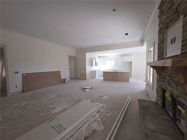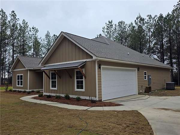 Est $2,215/moNew Construction - New 1 story home, 11 foot ceilings in living room, 9 foot ceilings everywhere else. 4 bedroom, 2 baths, master bath has garden tub and large tile shower with double shower heads, REAL wood burning fireplace in great room, accent wall in dining area, custom cabinets with soft close hinges, and many other features. Large front and rear porches, stainless appliances, granite tops, LVT flooring everywhere except bedrooms which will have carpet. Large 1.96 acre lot with lots of trees and privacy. A must see.