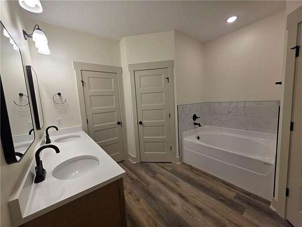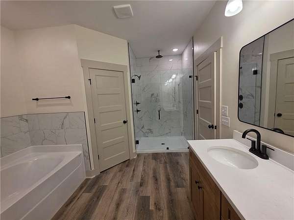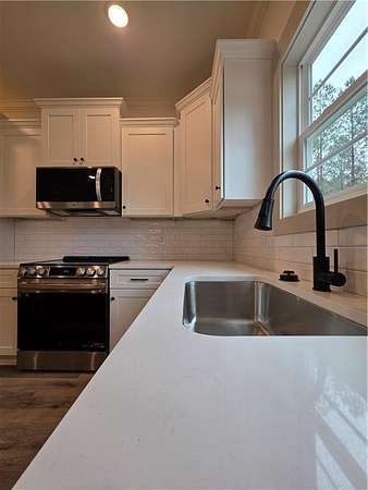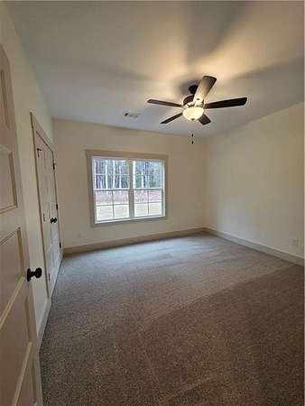 Est $2,215/moNew Construction - New 1 story home, 11 foot ceilings in living room, 9 foot ceilings everywhere else. 4 bedroom, 2 baths, master bath has garden tub and large tile shower with double shower heads, REAL wood burning fireplace in great room, accent wall in dining area, custom cabinets with soft close hinges, and many other features. Large front and rear porches, stainless appliances, granite tops, LVT flooring everywhere except bedrooms which will have carpet. Large 1.96 acre lot with lots of trees and privacy. A must see. House is 100% Complete and ready to go!!