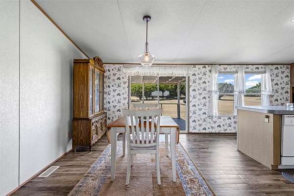 Welcome to your peaceful country retreat! Nestled on a sprawling 13 fully fenced acres, this charming 4-bedroom, 2-bathroom home offers the perfect blend of tranquility and convenience, just minutes from Cleburne State Park. The inviting open floor plan features a cozy living area, a well-appointed kitchen with abundant cabinetry, and a bright dining space that opens to the covered back patio—ideal for enjoying the wide-open views. The spacious primary suite includes a private ensuite bath, while three additional bedrooms offer flexibility for guests, family, or a home office. Outside, you’ll find multiple fruit trees, a seasonal creek, and plenty of room for outdoor activities or livestock, creating a true country haven. Whether you’re seeking a peaceful homestead, a weekend getaway, or a property to live in while you build your dream home, this land offers endless possibilities. Recent improvements include a new roof, new siding and skirting, updated plumbing beneath the home, and a leveled foundation—all completed within the last two to three years. Additional highlights include a 500-foot well and available fiber internet. Don’t miss the opportunity to own your own slice of the Texas countryside where peace, space, and potential abound.