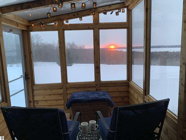 Four Season Million Dollar Torch Lake Views! Private Setting on 3.44 Acres. Located near the Historic Village of Alden, Torch Lake Boat Launch and Beach Access. Step Inside and be enveloped by the Outside with Wall to Wall windows framing Beauty that will WOW you…This meticulously Updated Home offers Comfort, Style, Functionality and is Uniquely Designed to capture the Beautiful “Water, Winter Wonderland” Lifestyle. Custom Designed Kitchen is a Cook’s Dream with a 10 ft. Quartz Top Island. Custom Cabinets provide Ample Storage & Task Lighting. Top of the Line Appliances make Meal Preparation easy for everyday Living and Entertaining. The Spacious Open Living has a Vaulted Ceiling and Gas Fireplace. Luxury Vinyl Plank Flooring flows seamlessly throughout the Main Level. Desirable Split Floorplan with Private Primary Ensuite on one side of the Home and Two Additional Bedrooms, Bathroom and Laundry Room adjacent to the Double Car Garage on the other side. The Primary Suite opens to a Cedar Garden Room with Windows to Relax and Enjoy Nature. An Open Staircase Leads to the Lower Level with Entertainment/Family Room with Surround Sound, Kitchenette, Three-Quarter Bath, A Room suitable for a Home Office, Large Walk-in Pantry/Storage and Mechanical Room. The Home is equipped with Two Energy Efficient Furnaces and Hot Water Heaters. Exterior Speakers are located in the Front and Backyard. Mature Hardwoods, Ornamental Trees, and Perennial Plantings provide Seasonal Color. Outdoor Living is enhanced with a Brick Paver Patio, Electric Awning and Fire Pit. A 24x32 Detached Utility Garage has a Heater (ready for propane hookup). Attic Storage is accessible by Pull Down Stairs. This Home is Centrally Located with Easy Access to Torch Lake, The Chain of Lakes, Championship Golf Courses, Skiing, Marinas that offer In/Out Boat Launches, Cherry Capital Airport, Churches, Boutique Shopping and more. WELCOME HOME!