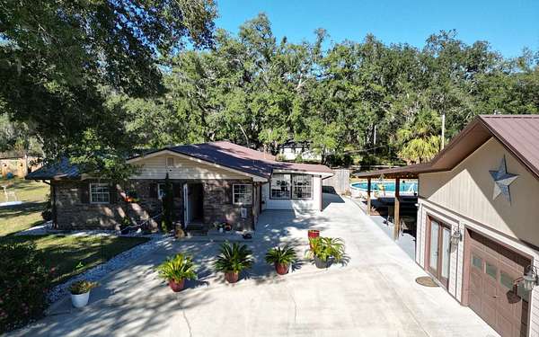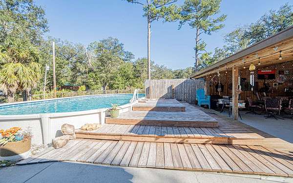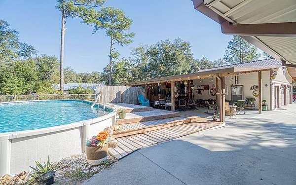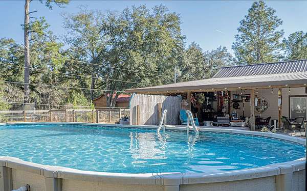 - Detached Carport Garage, Fence, Guest Quarters, Multiple Dwellings, Natural Woods, Pool, Prefabricated Shed