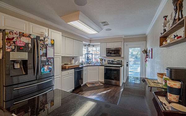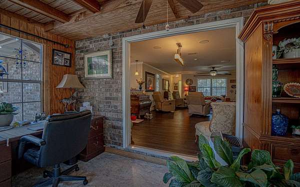- Blinds, Ceiling Fans, Fireplace, Laminate Counters, Storage Area, TV Satellite, Wood Counters