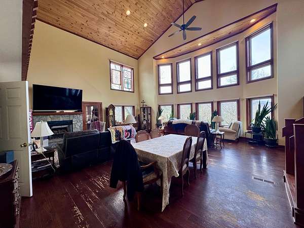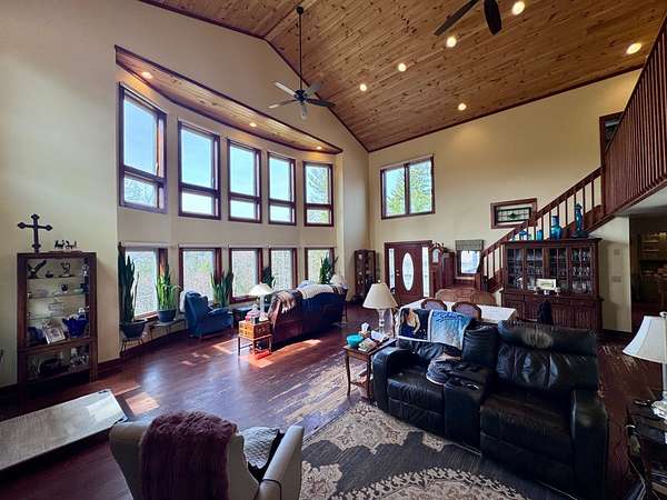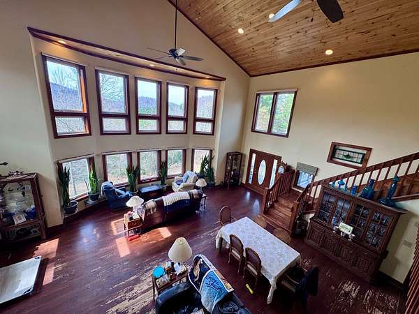 Est $4,518/moPRIVATE RETREAT WITH LONG RANGE VIEWS- This home is located on 5.4 acres. Spacious living room, with a wall of windows! Large custom kitchen - with dining area. Three full en-suites with large closets. Library/ office. Laundry room and half bath on main floor, second laundry area in the basement. Patio, firepit area, large covered screened porch, Front lawn area- great for gardening. Detached garage with bonus storage area/workshop. Additional carport for tractor, or another vehicle. Must see to appreciate! (seller offering allowance for refurbishing hardwood floors). $849,900.